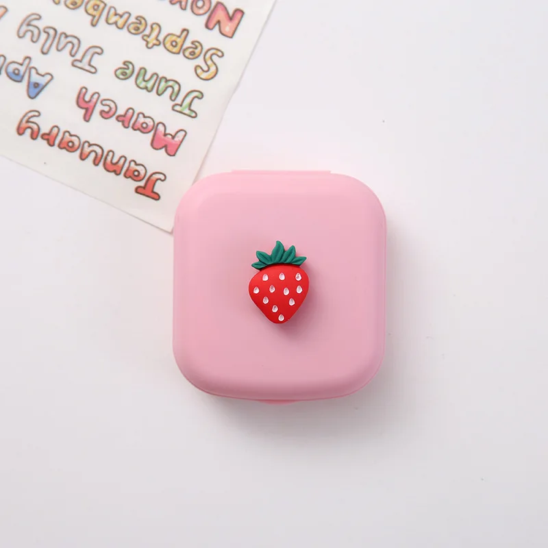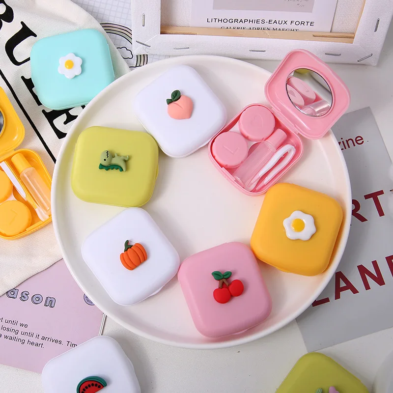 Мультяшный чехол для контактных линз, чехол для линз с милым рисунком кактуса, динозавра, клубники, с зеркалом, контейнер для хранения линз для ухода за глазами