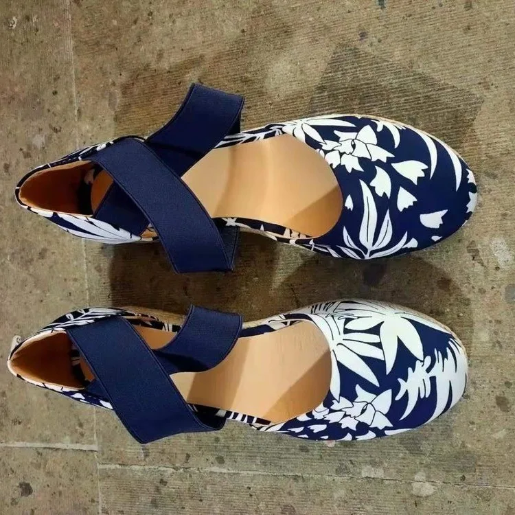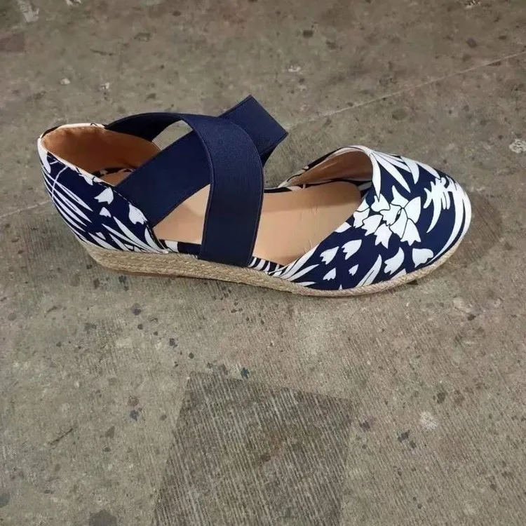 Сандалии женские на танкетке, босоножки с круглым носком, на резинке, Повседневная модная обувь, конопляная подошва, лето