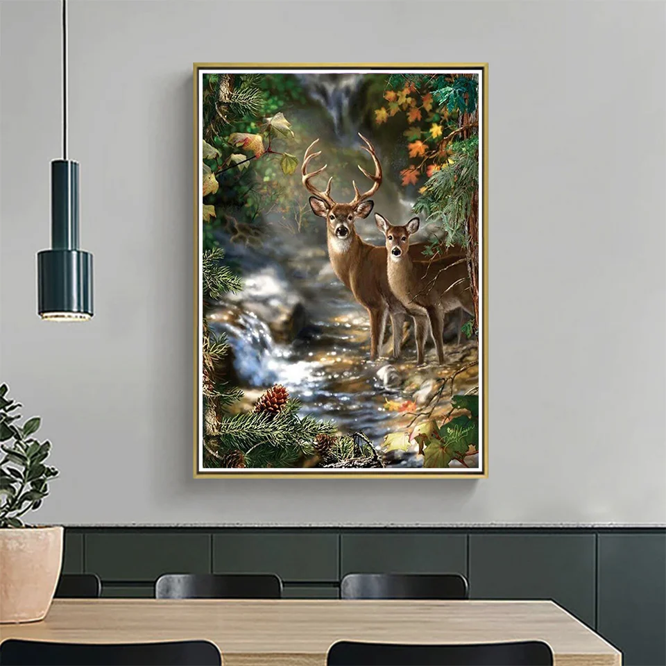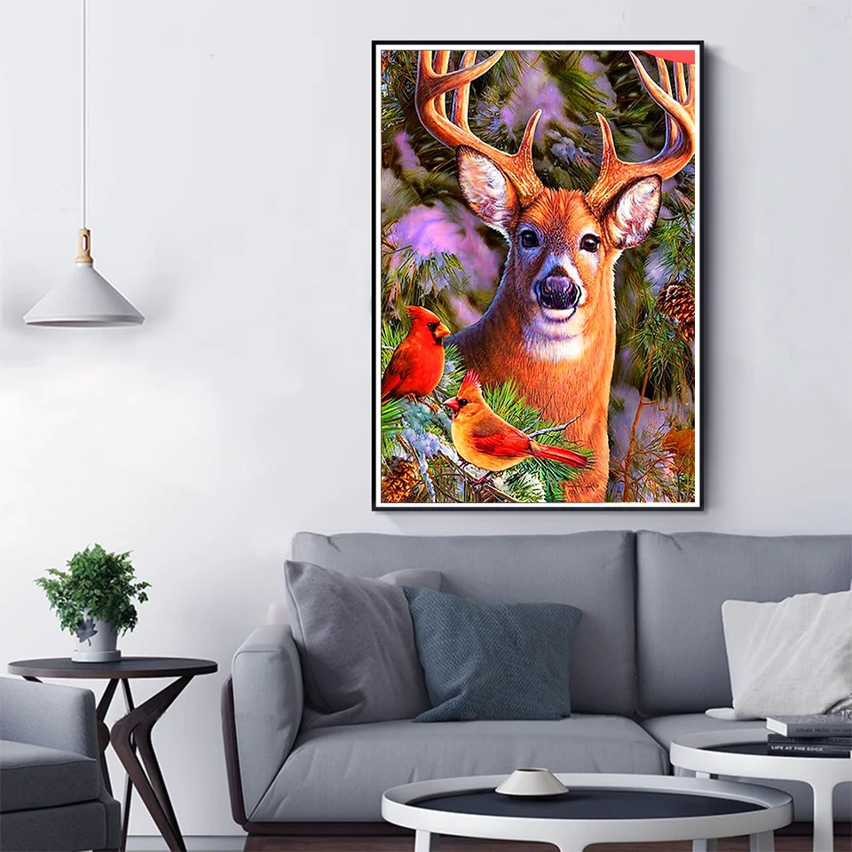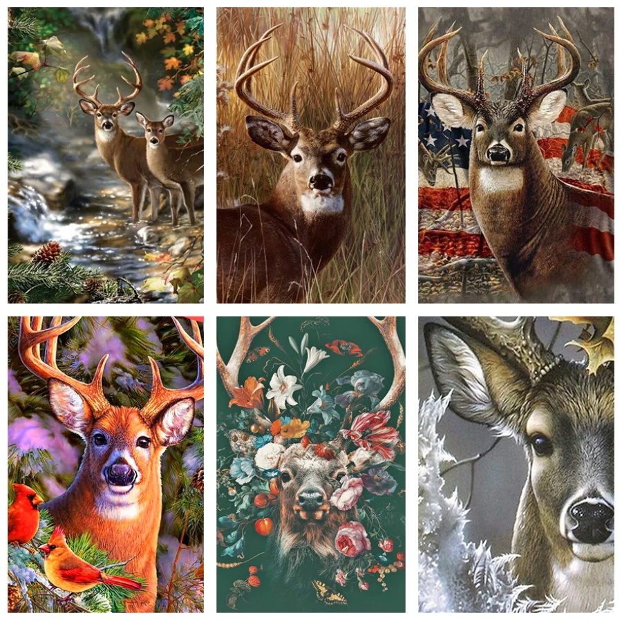 Алмазная 5D живопись сделай сам, полный набор для вышивки крестиком с изображением животных, оленя и цветов, мозаика для домашнего декора