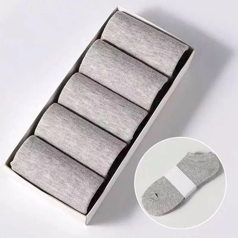 Носки мужские короткие однотонные 5 партЛот, дышащие хлопковые спор...