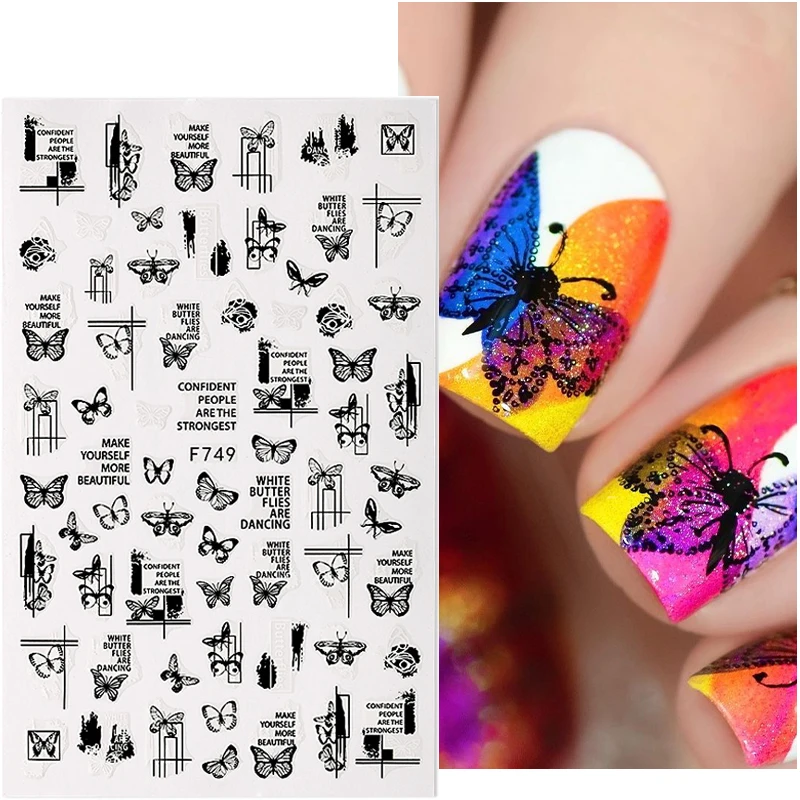 Валентинки сердце буквы бабочка цветок ногтей дизайн наклейки Слайдеры для ногтей печать наклейки Советы Маникюр дизайн ногтей украшение