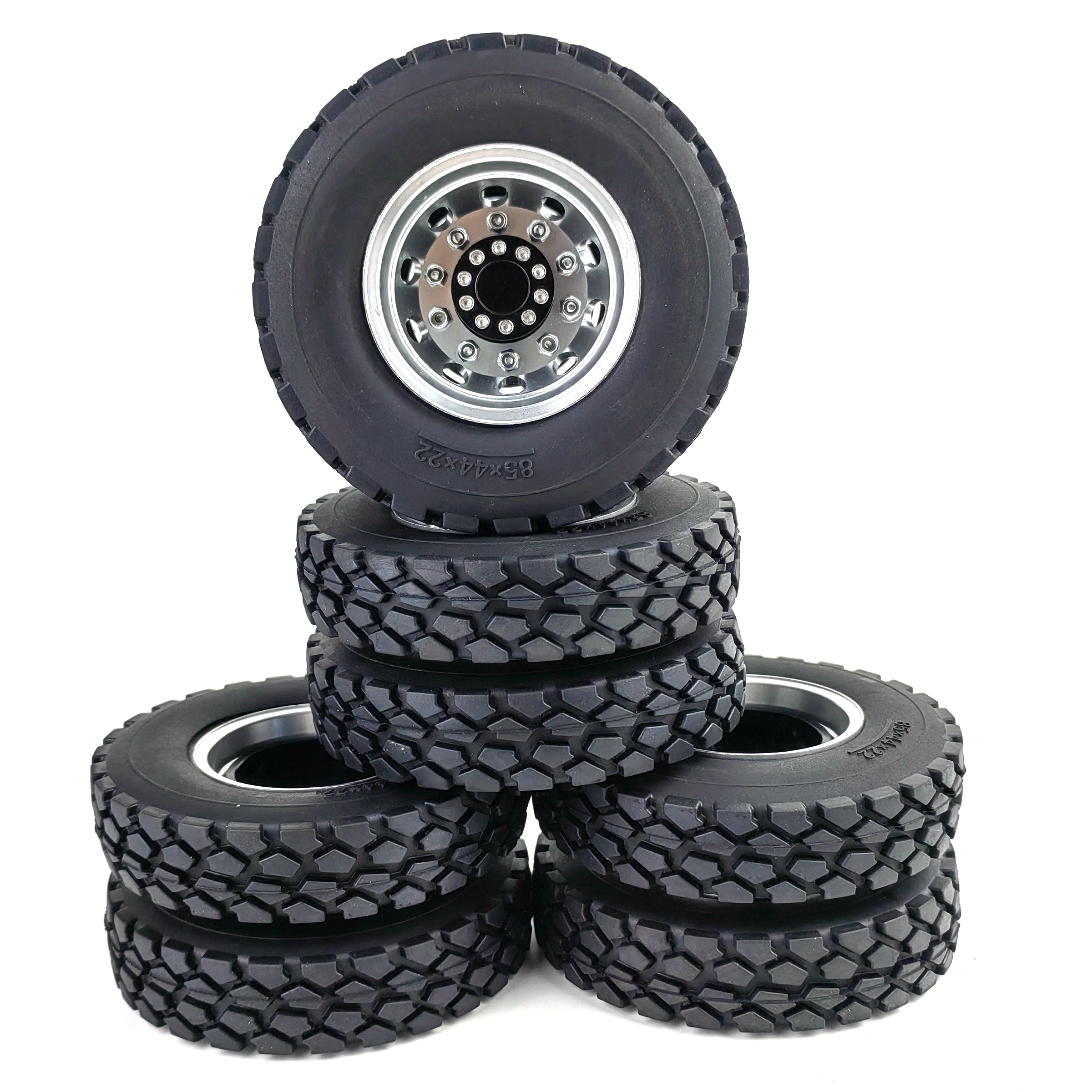 AXSPEED 4 шт. Tamiya по супер скидке заднее колесо комплект шин металлический обод колеса креплений диаметром 22-25 мм резиновые шины для вилочного погрузчика 1/14th Масштаб RC тягач автомобиль Запчасти
