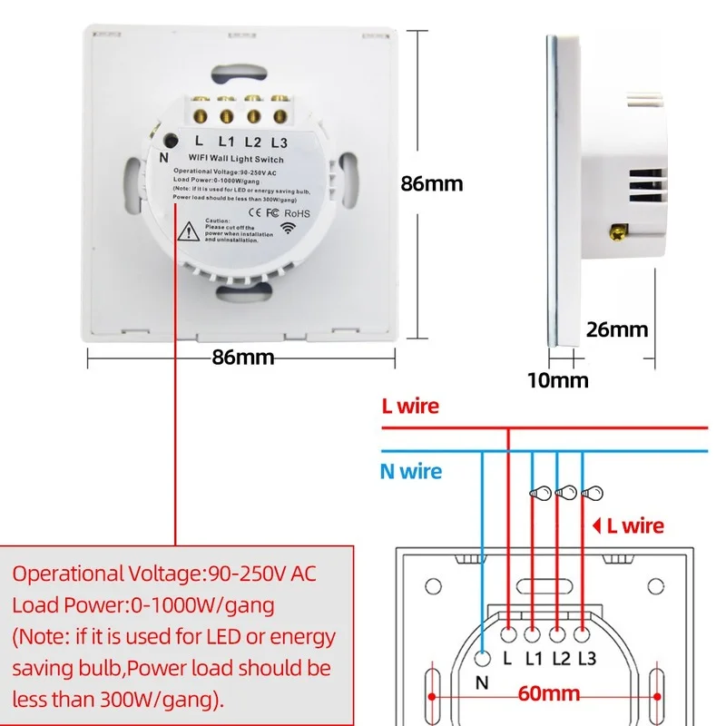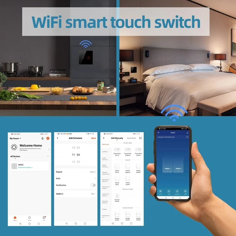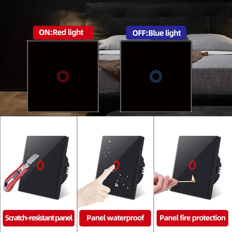 6.Безопасность и сертификация: Настенный выключатель изготовлен из высококачественных материалов, таких как огнестойкая оболочка, Фосфорная бронза соединяет и передовое ПК + закаленное стекло, может обеспечить защиту от огня, перегрузки для защиты вашей семьи.