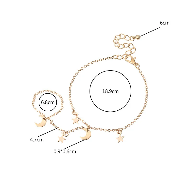 Простой милый регулируемый браслет-цепочка с подвеска Звезда Луна, ...