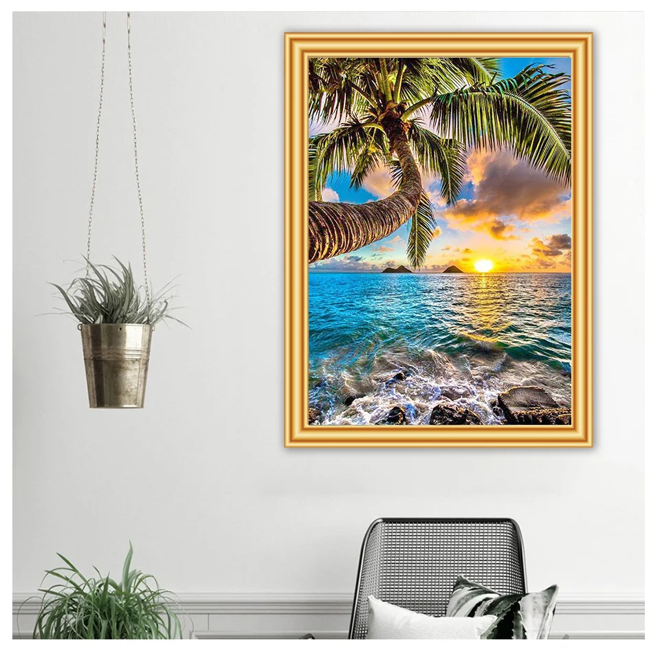 Полноразмерная Алмазная картина сделай сам С закатом на море и пляже 5D алмазная вышивка мозаика пейзаж Искусство Набор для вышивки крестиком домашний декор