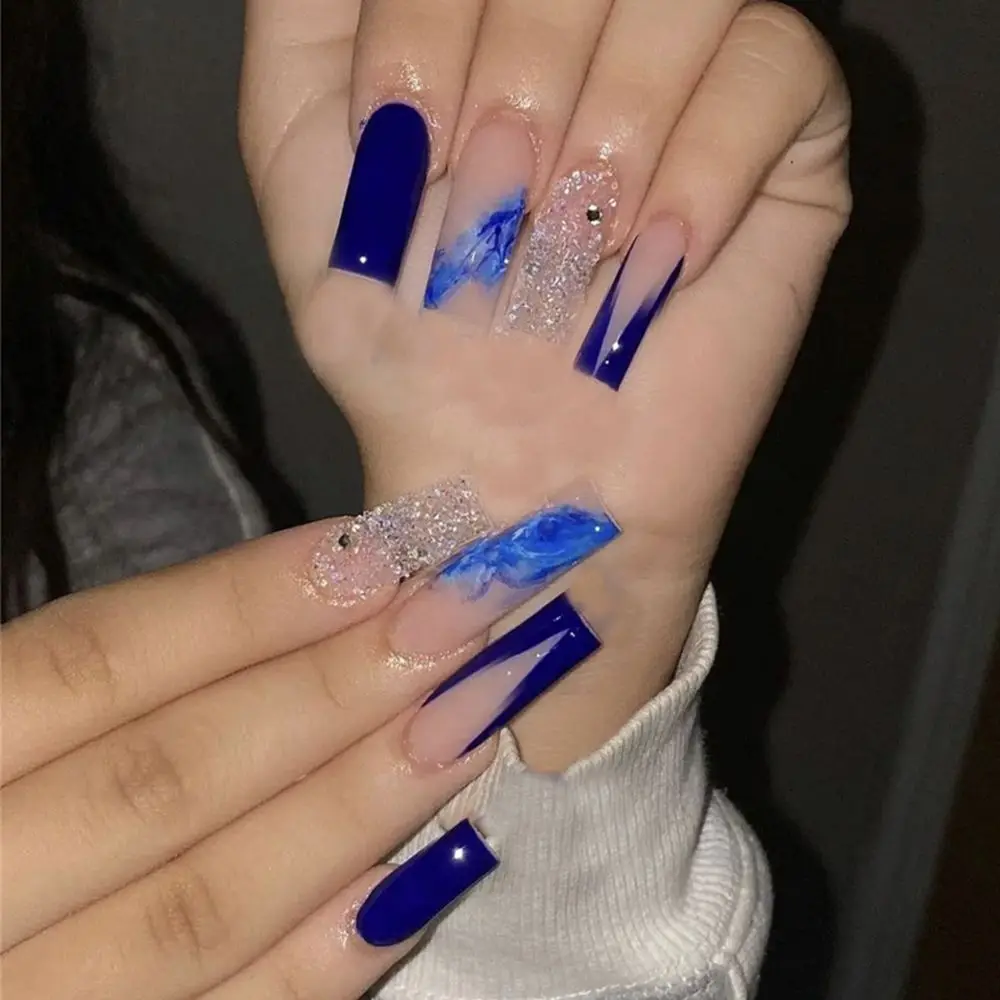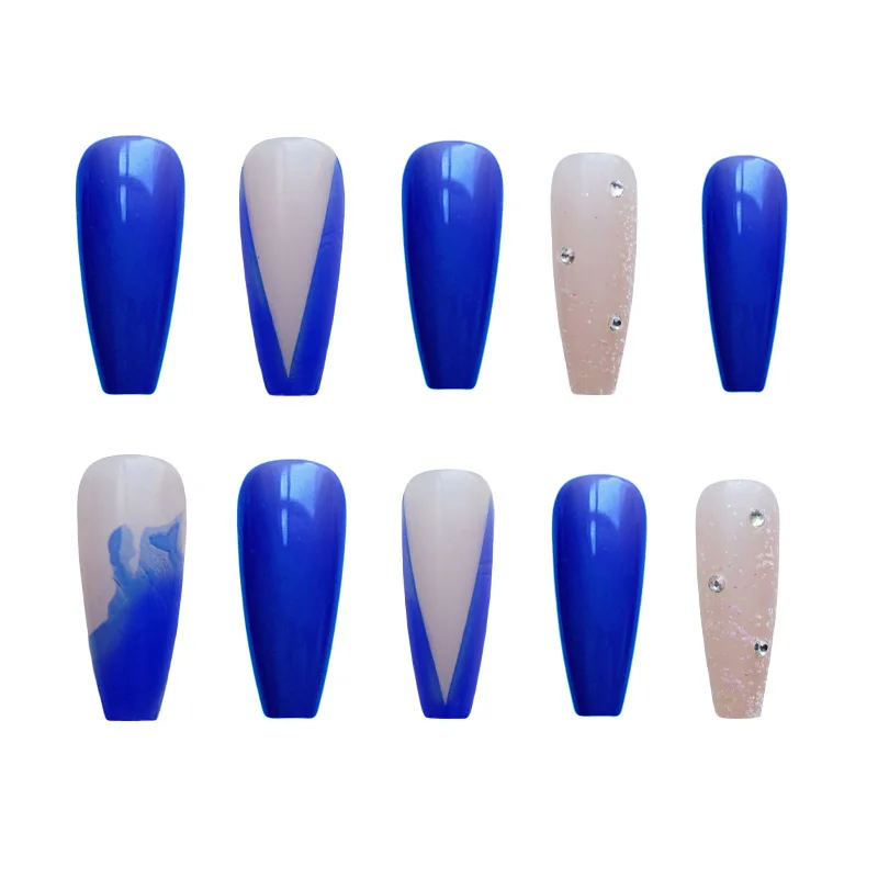 Синие накладные ногти V-образной формы с накладными ногтями носимые накладные ногти для французской балерины накладные ногти с полным покрытием накладные ногти