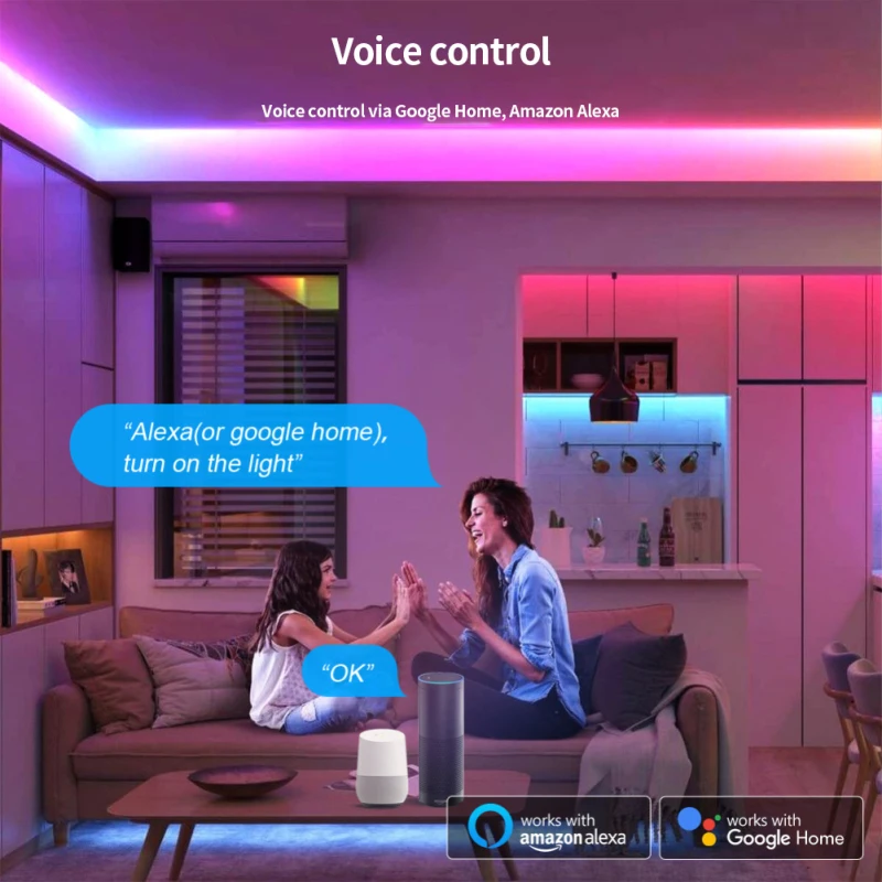 4. Функция: голосовое управление, дистанционное управление с помощью приложения, регулировка яркости, Совместимость с 5.Amazon Alexa Echo Google Home Assistant