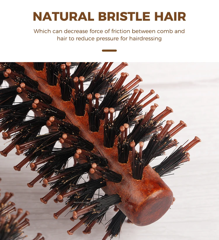 Прямая саржевая щетина кабана, круглая щетка для волос, деревянная ручка, вращающаяся щетка, инструмент для укладки волос, искусственная щетка для волос