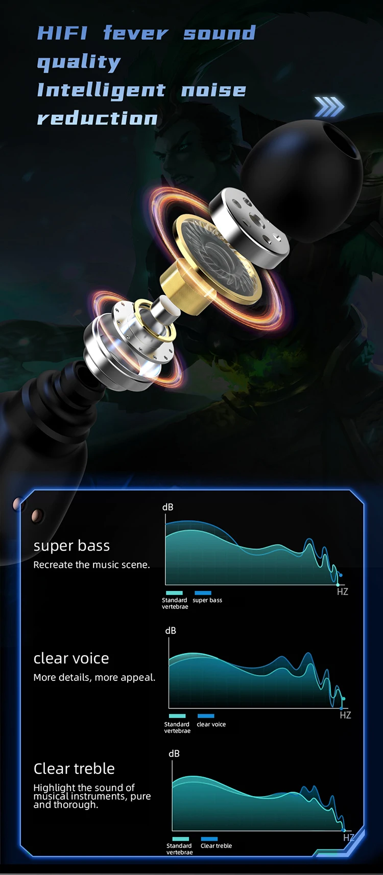 TWS-стереонаушники Raxfly игровые с поддержкой Bluetooth и глубокими басами
