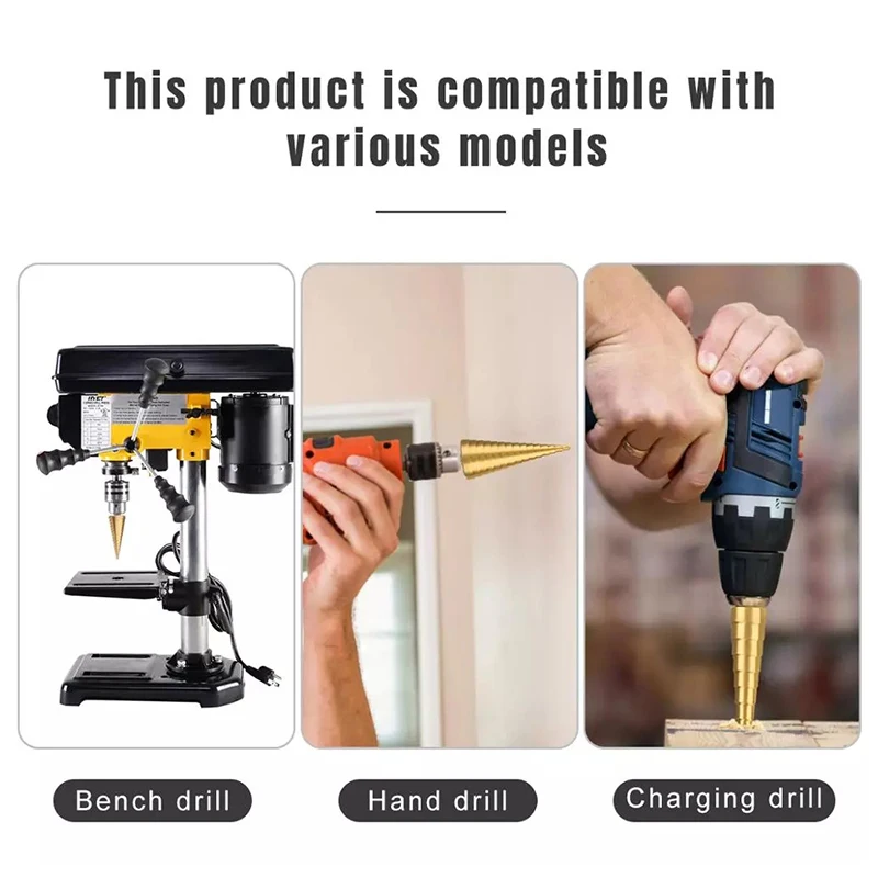 Внимание:Из-за того, что наружный диаметр каждого шага ступенчатого сверла постепенно расширяется, соответствующее сопротивление резанию и линейная скорость также будут постепенно увеличиваться.Из-за ступенчатого сверла полностью зависит от наклонной кромки, которая имеет только длину 1 мм, если скорость подачи слишком быстрая при сверлении, он будет легко отжигаться, вызванное истиранием со скошенными краями.Пожалуйста, при сверлении не нажимайте слишком сильно, чтобы избежать износа края. Подходящий материал:Заготовки с общей твердостью, такие как дерево, пластик, ПВХ пластина, железная пластина, толщина пластины в пределах 3 мм. Обратите внимание, что нержавеющая сталь и пружинная сталь не применимы. Не для закалки. (Водяное охлаждение во время работы, может эффективно продлить срок службы сверла, особенно в чехол непрерывного бурения)