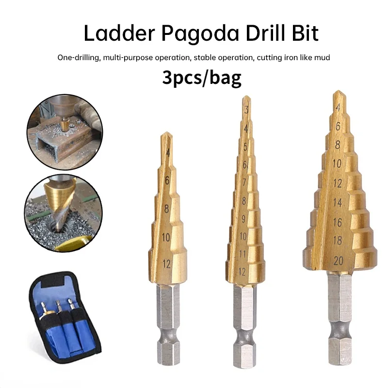 3 шт.компл. 3-12 мм 4-12 мм 4-20 мм HSS ступенчатое сверло с прямым желобом с титановым покрытием для дерева и металла, набор инструментов для сверления сердечника