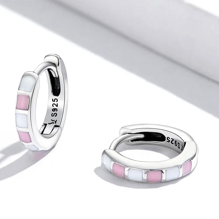 Женские серьги-кольца BAMOER, серьги-кольца розового и белого цвето...