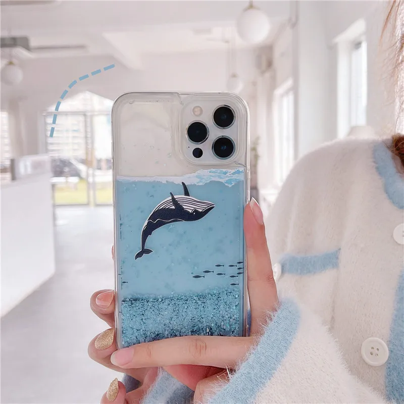 Чехол для телефона с синими блестками и зыбучим песком для iPhone 12 13 11 Pro Max XR XS Max X 7 8 Plus