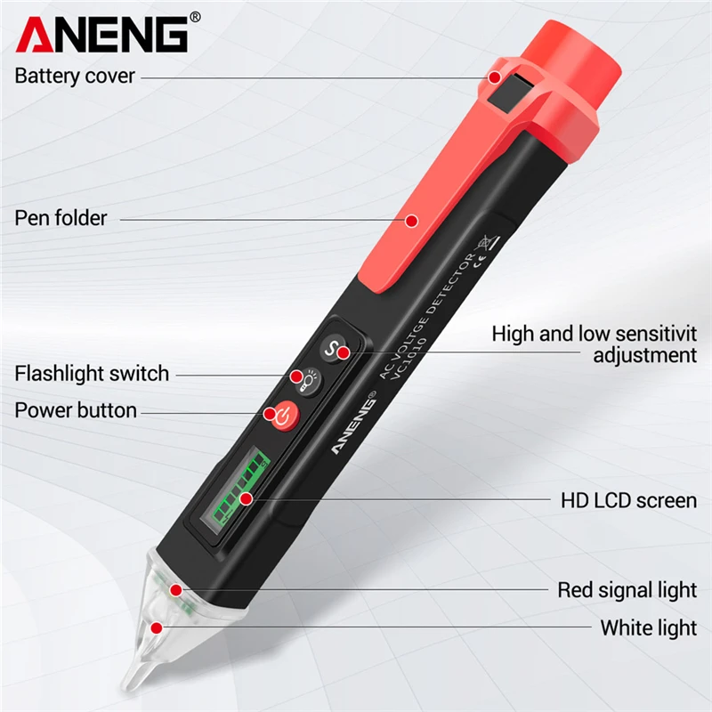 1 x Бесконтактный детектор напряжения переменного тока (батарея не входит в комплект.)