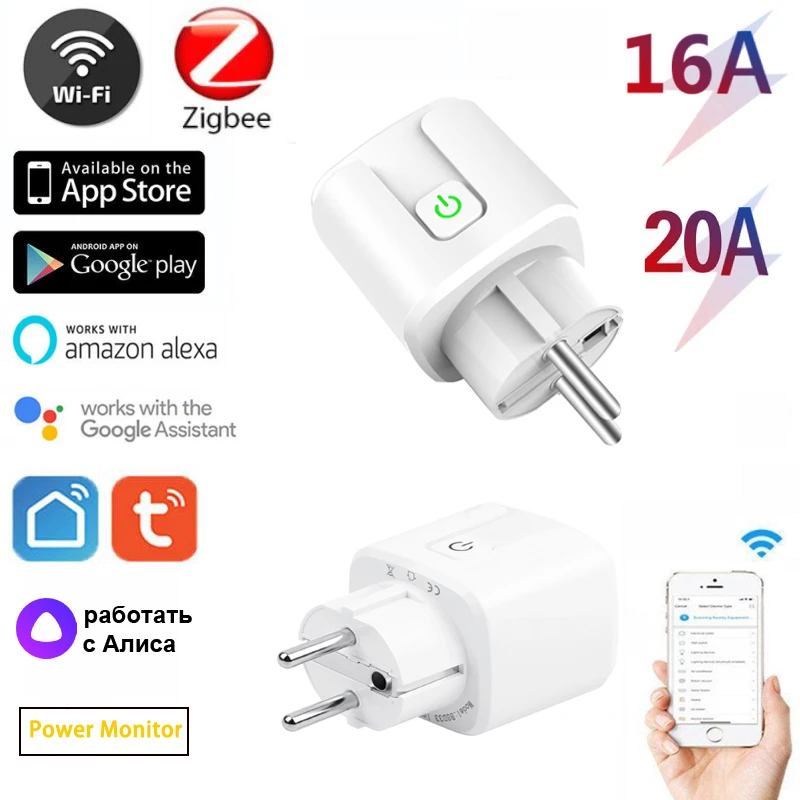Смарт-розетка Zigbee с поддержкой Wi-Fi, 20 А, 16 А