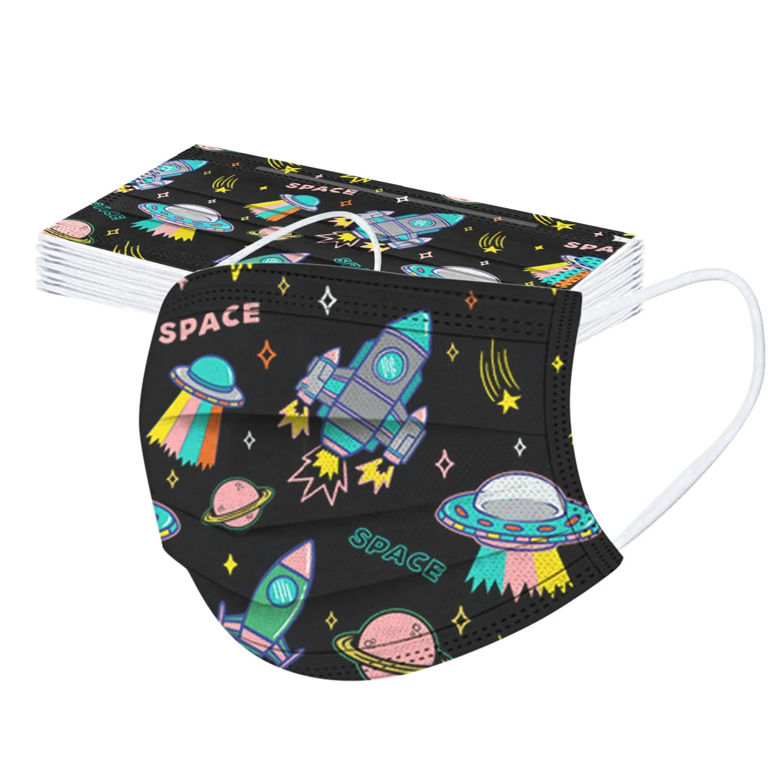 В 3 слоя Нетканая одноразовая маска изготовлена из 3 слоев нетканого материала, Безопасен и безопасен для использования. Дышащий материал и милый Узоры, которые делают его полезным и модным. Специальный 3 слоя из нетканого материала Дизайн, обеспечивает некоторую защиту от пыли, автомобильных выхлопных газов, Пыльца и т. д. эластичная Ушная петля, легко носить и не давит на уши. Маникюрный салон или любые другие области, где может потребоваться защита