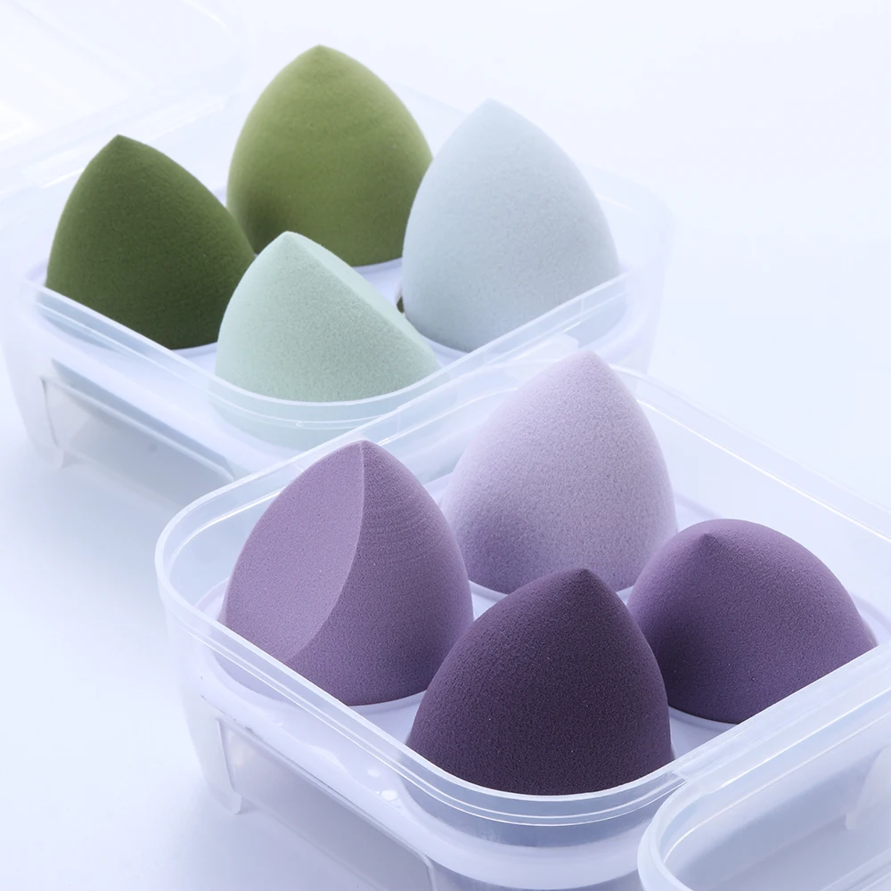 Губка для макияжа разных размеров, косметическое спонж для сухого и влажного использования, для тона, пудры, румян, инструменты для красоты с футляром для хранения