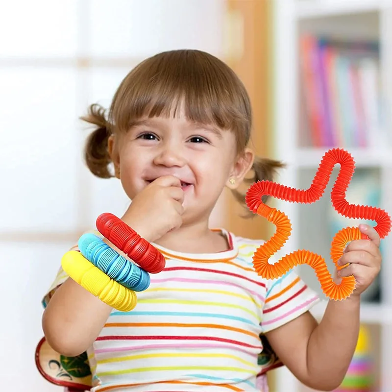 【Стимулирование творчества toy】поскольку поп-трубки могут растягиваться в три раза дольше и сгибаются, дети могут использовать их для создания многих форм, которые они хотят. Это улучшает мелкую моторику и воображение детей. Даже в 6 цветах родители могут научить их распознавать цвета.