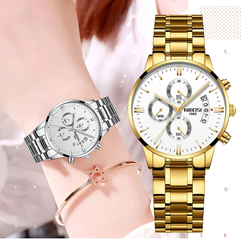 Часы наручные NIBOSI женские кварцевые, брендовые Роскошные модные водонепроницаемые из нержавеющей стали