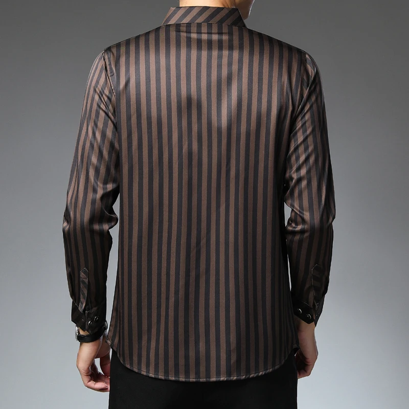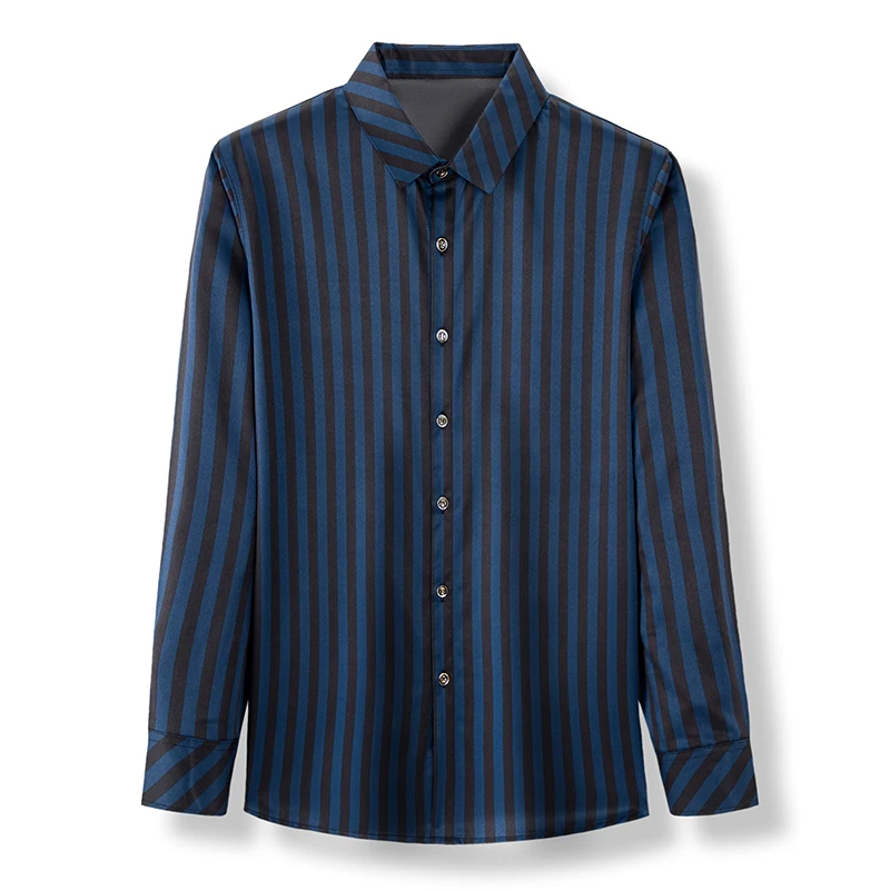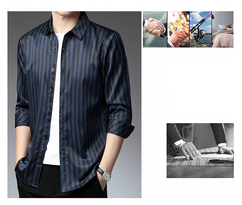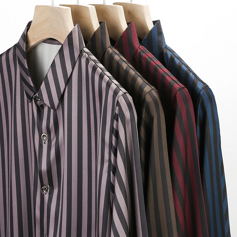 Рубашка мужская шелковая в полоску, тонкая сорочка с длинным рукаво...