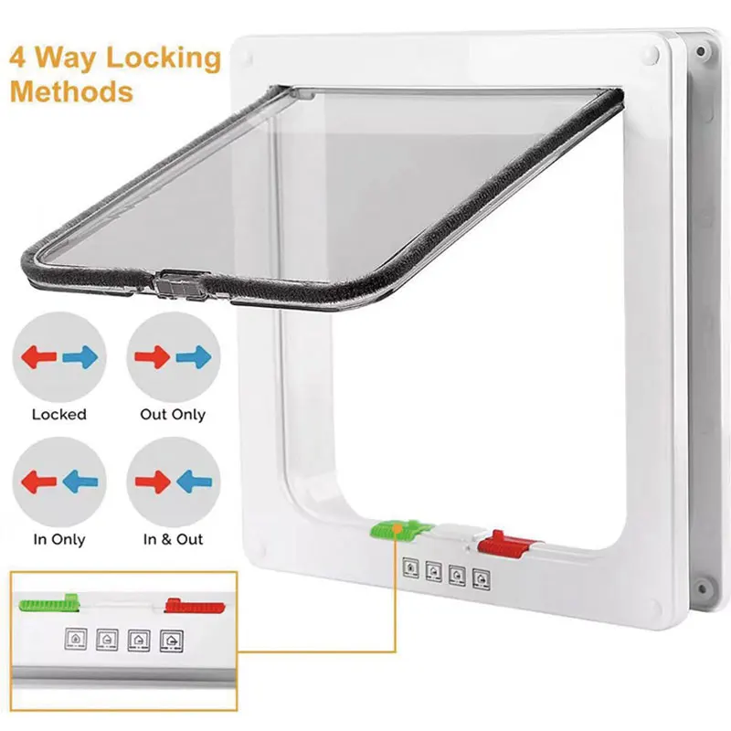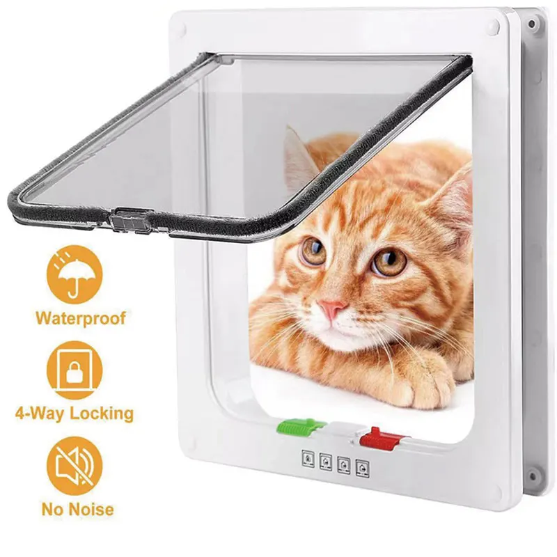 Откидная дверь Baitewei для собак и кошек с 4-сторонним замком безопасности, откидная дверь для собак, кошек, котят, небольшие ворота из АБС-пластика для домашних животных, комплект дверей для кошек и собак