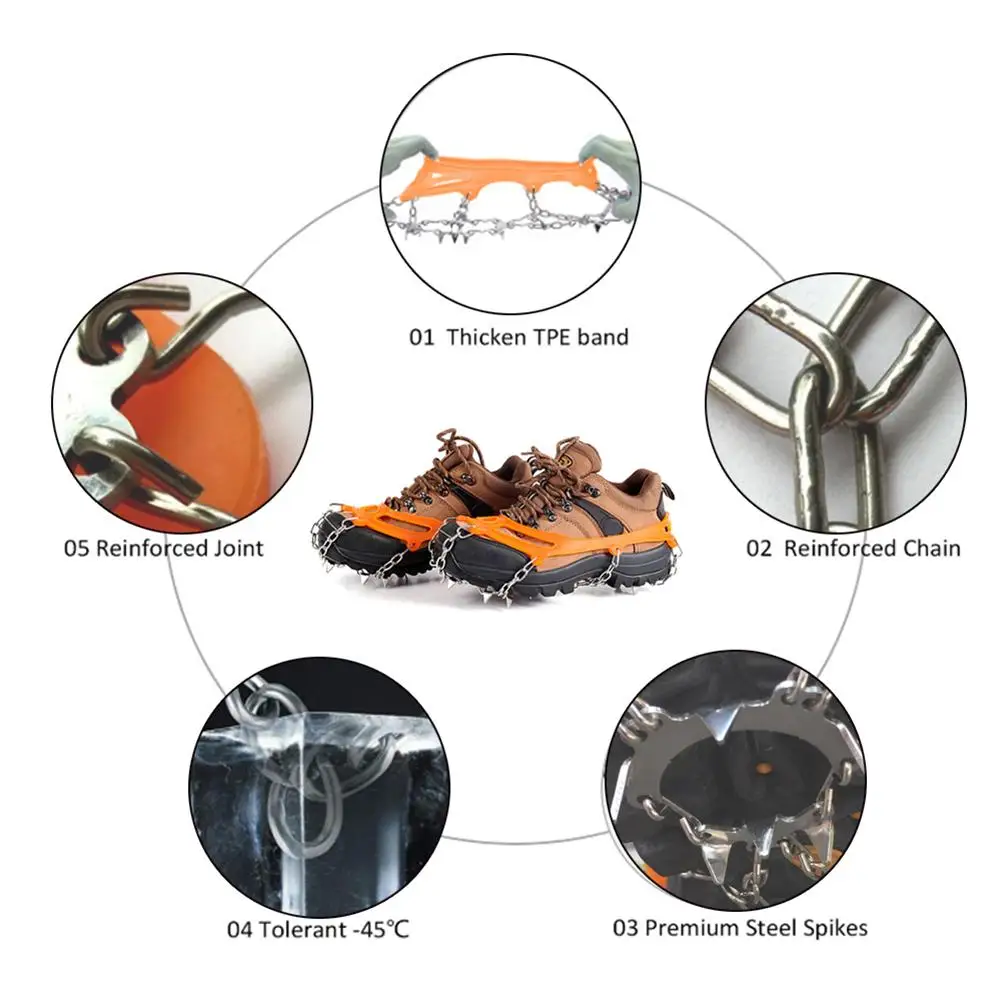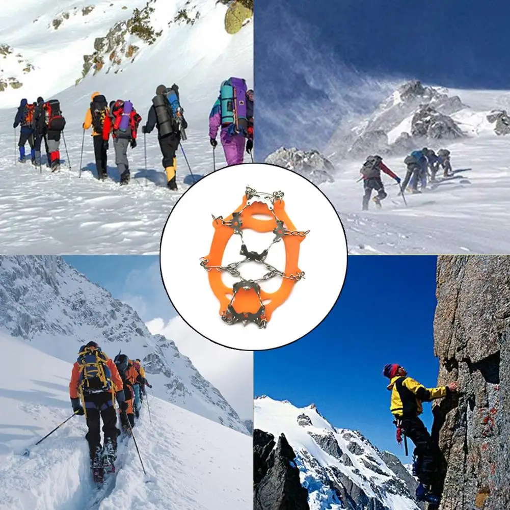 Прочные износостойкие однотонные скобы, зимние альпинистские Нескользящие Чехлы для обуви, 19 зубьев, зажимы