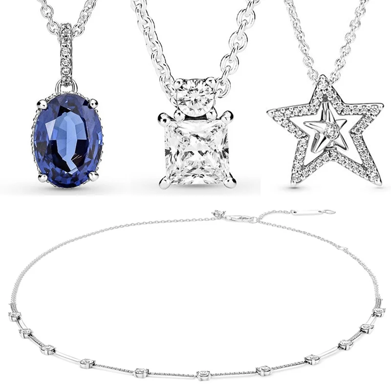 Асимметричное синее Сверкающее Колье со звездами, колье с круглым и...