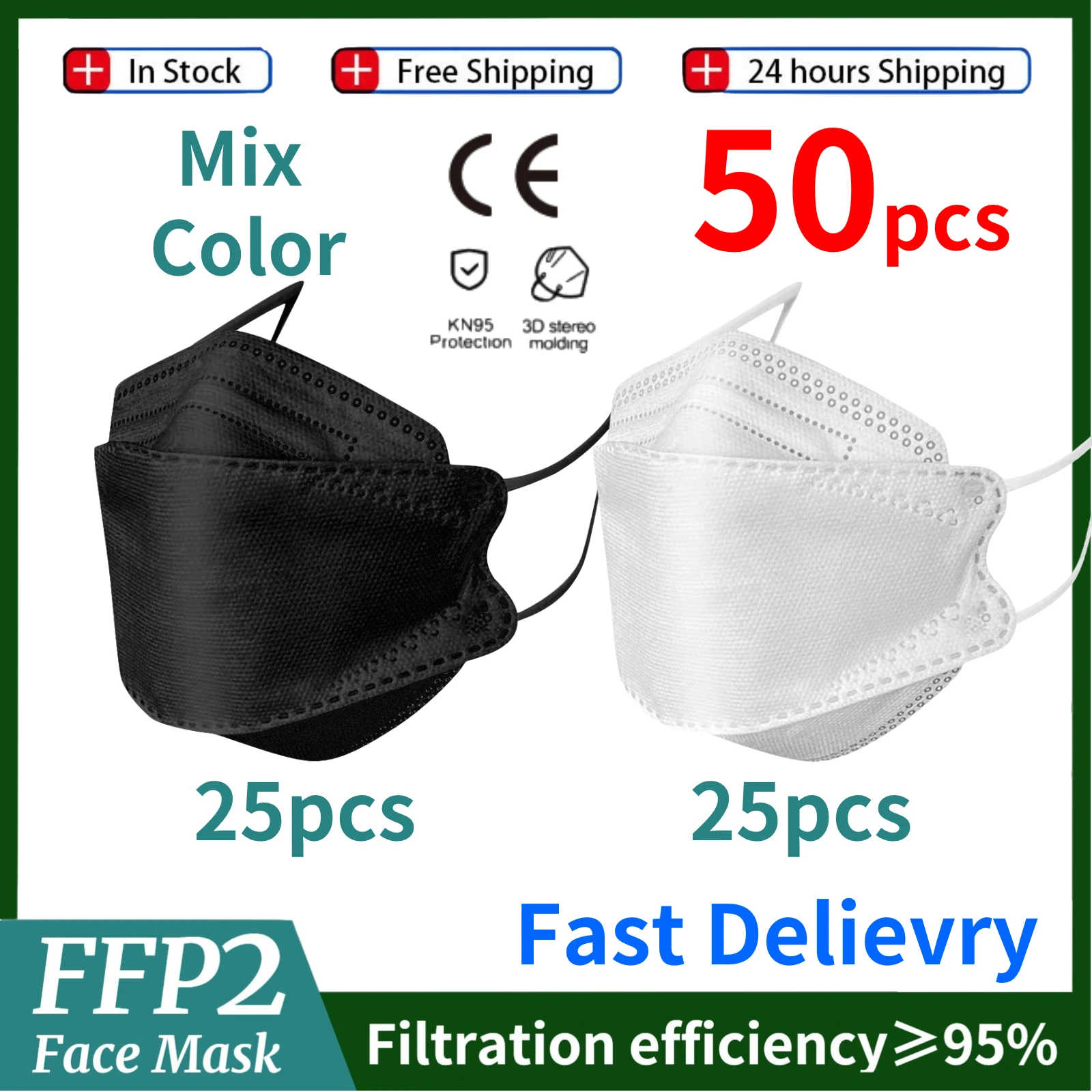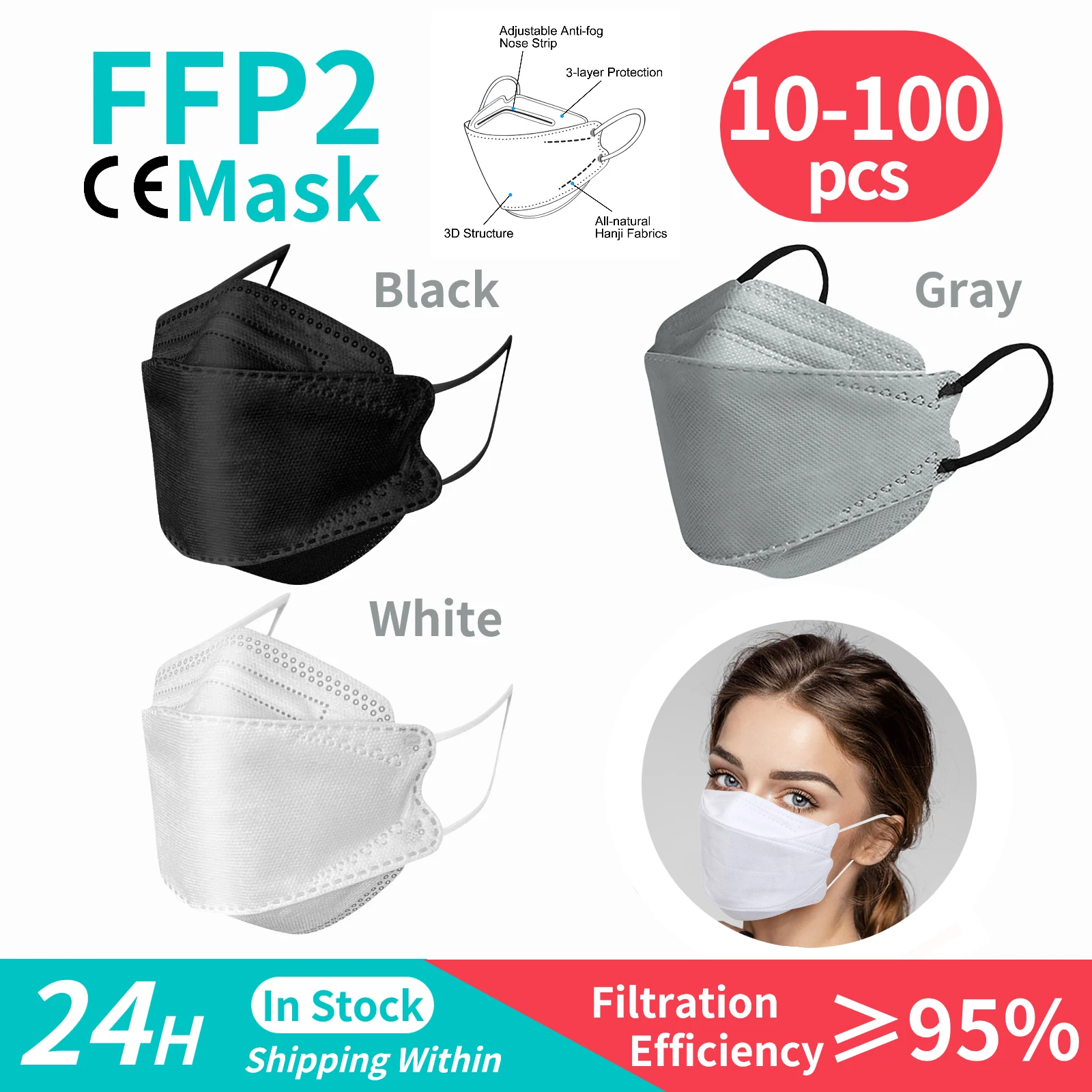 100 шт., маски для взрослых FPP2, маски KN95, маска с рыбой, одобренная FFP2 маска, гигиенический безопасный респиратор, многоразовый, доставка за 10 дней!
