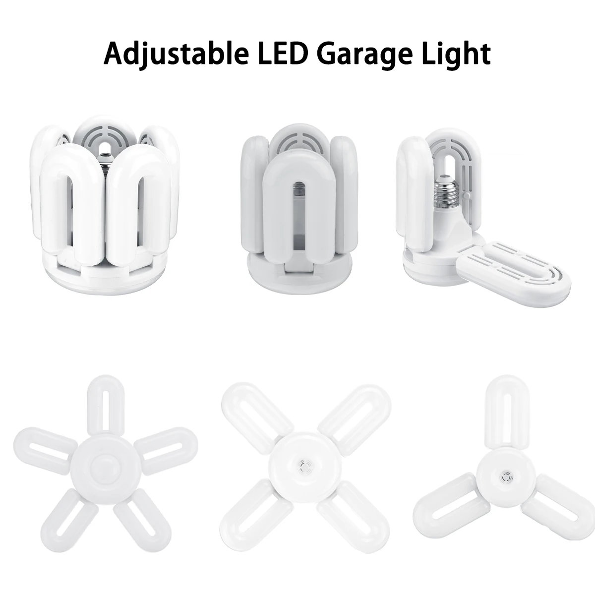 Особенности:-Супер яркий и энергосберегающий: светильник гаража поставляется с высоким выходом люмена 8000lm, общая мощность 80 Вт, белый светильник 6500K. Гаражный светодиодный светильник предоставит вам лучший внутренний светильник. 85% светодиодный энергосберегающий и экологически чистый.-Регулируемый деформируемый дизайн: светодиодный потолочный светильник для гаража с 3/4/5 регулируемыми головками светодиодный светильник, каждый из которых может быть свернут до 90 градусов руками и максимальный угол покрытия может достигать 360 °, чтобы светильник стал более широкой областью. Нет темных зон, привидения или бликов.-Простота установки: светодиодный светильник для гаража s со стандартным основанием E26/E27, гаражный светодиодный светильник прост и удобен в установке. Нет инструментов, Нет проводки и нет необходимости в профессиональных электриках, установка так же проста, как завинчивание в лампочку-светильник. Примечание: Перед установкой выключите питание.-Широкое применение: отличная замена обычных люминесцентных приборов. Широко используется в гараже, складах, подвалах, сараях, офисах, складских помещениях, супермаркетах, станциях, промышленных рабочих станциях, мастерских, выставочных площадках и т. д.-Высокое качество и длительный срок службы: светодиодный подвальный свет изготовлен из высококачественного алюминия и превосходного ПК. Светодиодный потолочный светильник для гаража может эффективно рассеивать тепло в течение длительного времени. Высокая термостойкость и устойчивость к коррозии. Безопасно для использования.