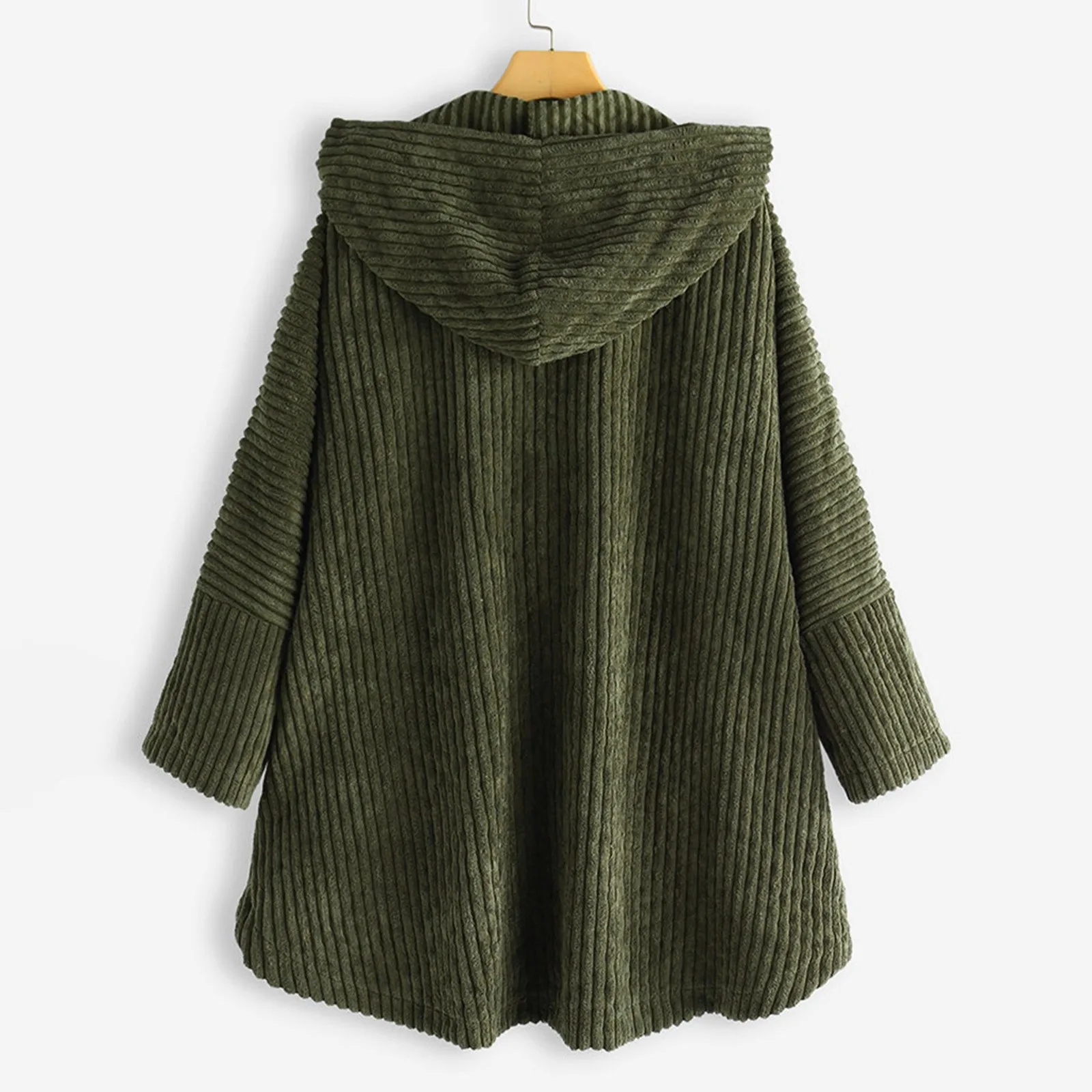 Женская осенне-зимняя однотонная одежда с длинными рукавами и карманами на пуговицах с капюшоном
