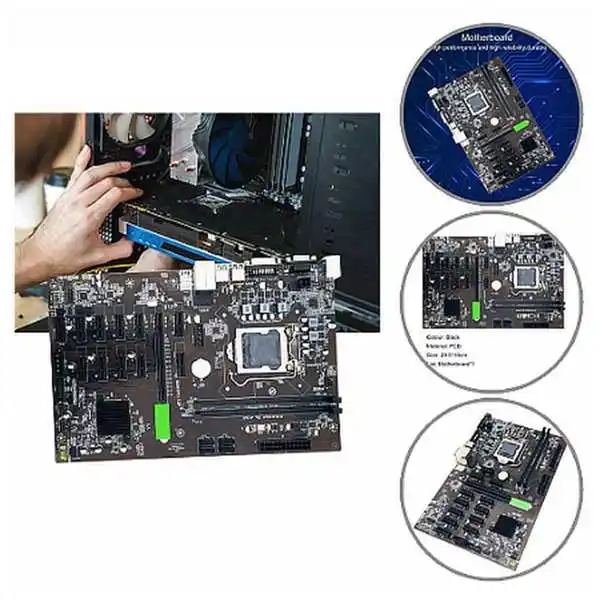 100% новый и высокое качествоИдеальное сочетание: в соответствии с оригинальной моделью, идеальной установкой замены, высококачественными компонентами.Быстрый запуск, загрузка и передача файлов. Низкое энергопотребление, тихий, надежный и прочный.Прочный: Этот продукт изготовлен из высококачественного материала, прочный, длительный срок службы, прочный и стабильный в использовании.Компактный и портативный: будучи таким мини и легким, этот продукт не занимает много места и может быть легко удален.Чип материнской платы: Интегрированная сетевая карта чипа, основной набор микросхем: для Intel B250, чип сетевой карты интегрирует RTL8105e и другие быстрые сетевые карты, аудио чип: без звуковой картыХарактеристики процессора: платформа ЦП: для Intel Core 6-го поколения/Pentium/Celeron, гнездо ЦП: LGA 1151, поддержка ЦП Количество: 1 (не входит в комплект)Память Технические характеристики: Тип памяти: DDR4 2133/2400/2800/3000 МГц до 16G, слот для карт памяти: 2 x DDR4Слот расширения: 1 графический слот PCI-E X16, 11 графический слот PCI-E X1, 2 штыря USB2.0, 1 штырь USB3.0, 1 COM pin, 2x4p квадратный интерфейс питания, 4 x интерфейс SATA3.0Интерфейс ввода/вывода: PS/2 интерфейсная клавиатура и мышь Универсальный интерфейс 2, 1 сетевой интерфейс RJ45, 1 выход DVI HD, 2 интерфейса USB 3,0 4 интерфейса USB 2,0, 1 VGAВнешний вид различных партий продуктов может отличаться, что не повлияет на использованиеЦвет: черныйМатериал: PCBРазмер: 29,5x19 смПосылка:1 х материнская платаСетевой кабель RJ45 1x2 метра (цвет внешнего вида случайный, не принимайте указанные)Кабель питания видеокарты SATA 15pin-6pin (цвет внешнего вида случайный, не принимайте указанные)-1 шт.1 Вентилятор охлаждения (цвет внешнего вида случайный, не принимайте указанные)1 х кабель SATA (цвет внешнего вида случайный, не принимайте указанные)1 х кабель переключения (Случайные цвета, не принимаем указанный цвет)Только вышеуказанная посылка, другие товары не включены.Примечание: светильник и различные дисплеи могут привести к тому, что цвет товара на картинке немного отличается от реального. Допускается погрешность в измерениях +/- 1-3 см.