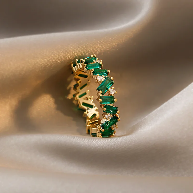 Flscокрашенные Роскошные зеленые Кристальные нестандартные золотые кольца для женщин 2021 новые ювелирные изделия набор высокого уровня аксессуары для корейской девушки