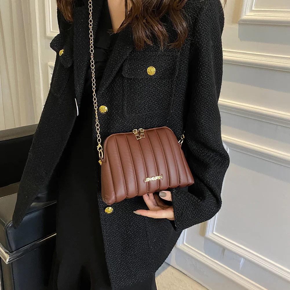 Новое поступление, простые сумки на плечо для женщин, плиссированная сумка через плечо в форме ракушки, женская кожаная черная сумка, маленькая сумка-мессенджер