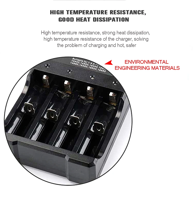 Зарядное устройство для батарей, черное, на 4 батареи, 110220 В переменного тока, с USB, для батарей 18650, литиевых, 3,7 В