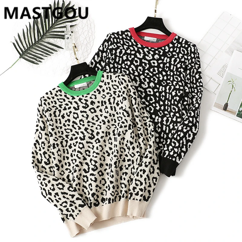Осенне-зимние женские свитера, вязаные пуловеры с леопардовым принт...