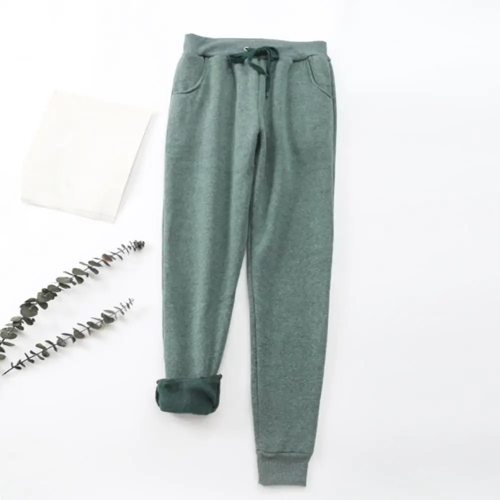 Спортивные Женские однотонные теплые флисовые длинные брюки с завязкой на щиколотке