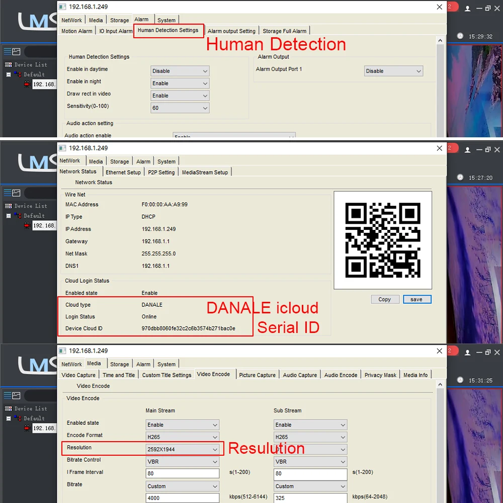 Поддержка человеческого обнаружения, поддержка настройки других интеллектуальных функций и т. Д.(Обнаружение человека должно работать на danale NVR и softs)