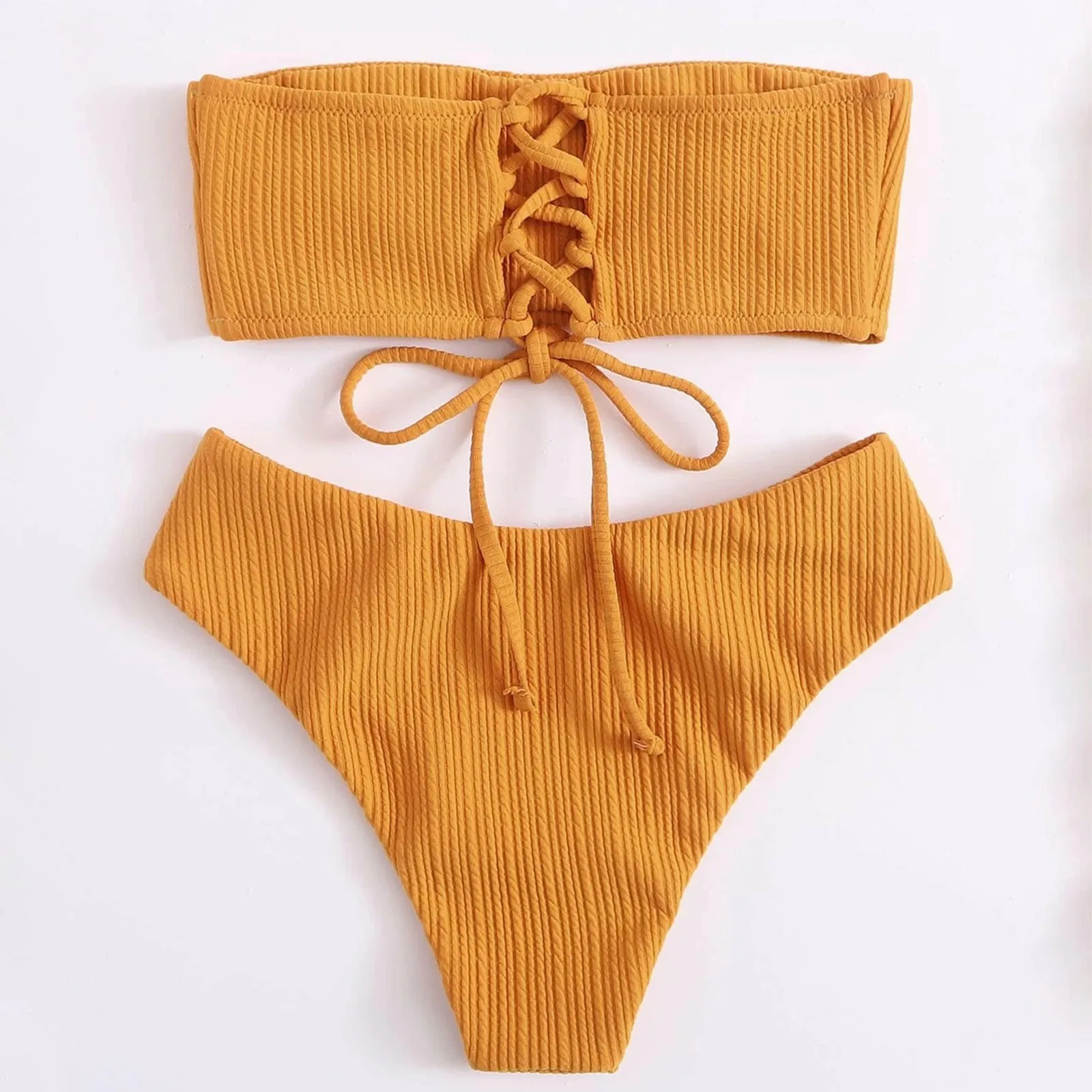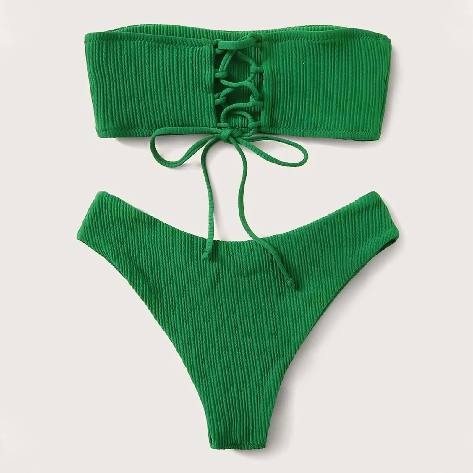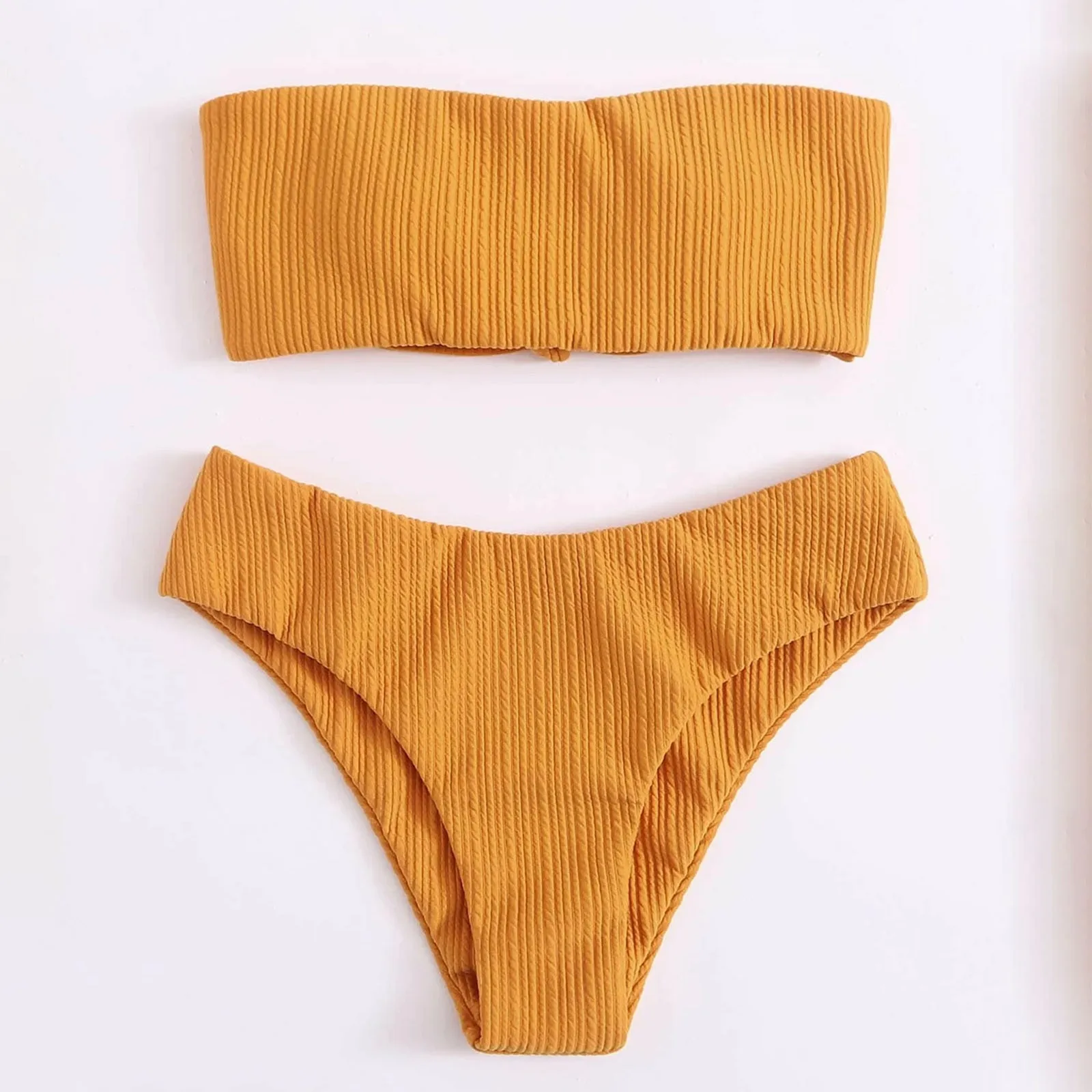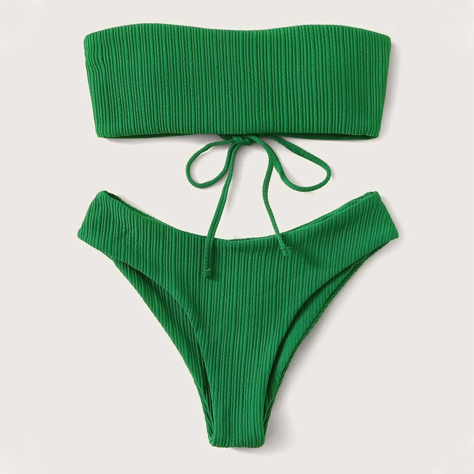 Женский комплект бикини со стрингами 2022, бразильский купальник, однотонный сексуальный купальный костюм-бандо, купальник, женский летний бандажный купальный костюм