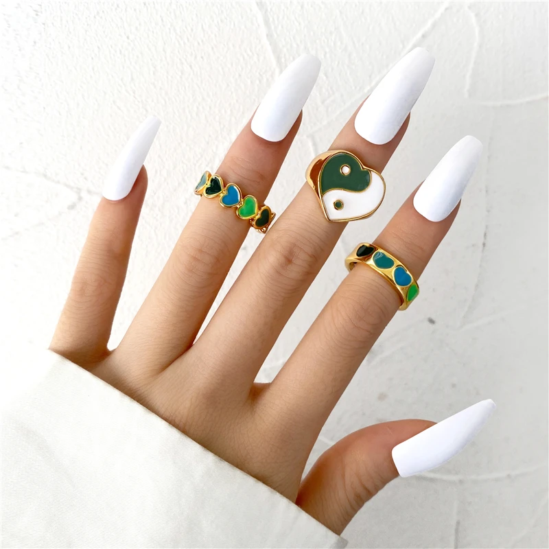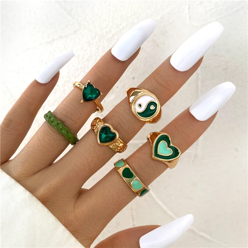 Комплект женских колец 17KM в стиле панк с красочными белыми бабочками и сердцами, богемное кольцо с золотым и зеленым сердцем, оптовая продажа, ювелирные изделия для влюбленных