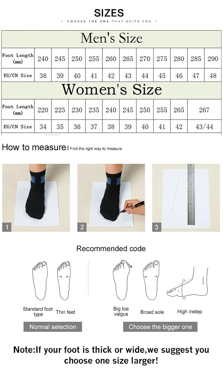 1. Наш размер не является стандартным размером США, и он равен только длине стопы!2. Стандарты размеров в разных странах и разных производителях отличаются, длина вашей стопы является единственным основанием для выбора размера.3. Длина стопы не является длиной стельки, а также не является внутренней длиной обуви. Как правило, внутренняя длина> длина стопы4. Пожалуйста, тщательно Измерьте длину вашей стопы. Метод показан на иллюстрациях (ниже).5. Пожалуйста, выберите размер в соответствии с длиной Вашей стопы!ЕС Size36 = US5 = стопы Length22.6-23,0 смЕС Size37 = US5.5 = стопы Length23.1-23,5 смЕС Size38 = US6 = стопы Length23.6-24,0 смЕвропейский размер 39 = американский размер 6,5 = длина стопы 24,1-24,5 смЕвропейский размер 40 = американский размер 7 = длина стопы 24,6-25,0 смЕвропейский размер 41 = американский размер 7,5 = длина стопы 25,1-25,5 смЕвропейский размер 42 = us8,5 = длина стопы 25,6-26,0 смЕвропейский размер 43 = американский Размер 9,5 = длина стопы 26,1-26,5 смЕС Size44 = US10 = стопы Length26.6-27,0 смЕвропейский размер 45 = американский размер 10,5 = длина стопы 27,1-27,5 смЕвропейский размер 46 = US11 = длина стопы 27,6-28,0 смЕС Size47 = US11.5 = стопы Length28.1-28,5 смЕС Size48 = US12 = стопы Length28.6- 29 см