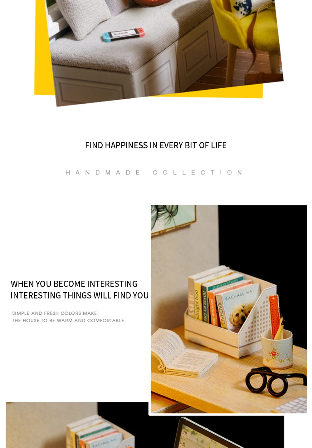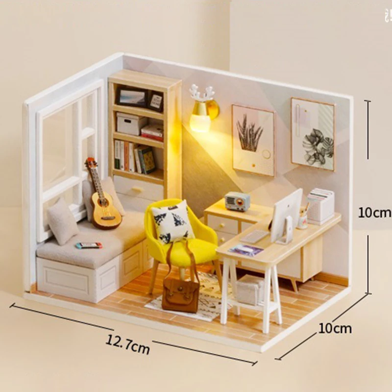 DIY кукольный домик набор миниатюрные кукольные домики мебель простой стиль Все товары такие же, как на изображении. Они поставляются с частями, и вам нужно собрать их самостоятельно. 1. Включая всю отображаемую мебель 2. Стиль: Современный и простой 3. Размер готовой продукции: 12,7*10*10 см 4. Материал: дерево, ткань, бумага, смола, пластик, материал 5. Руководство: с инструкцией 6. Необходимые ручные инструменты: ножницы, нож, дырокол, точный пинцет, отвертка, клей 7. Изделие имеет детали и должно быть собрано Примечание: 1. Не включает инструменты/клей/аккумуляторы. 2. Возраст: подходит для детей старше 8 лет 3. Дети до 3 лет должны сопровождать взрослых