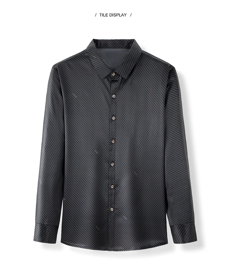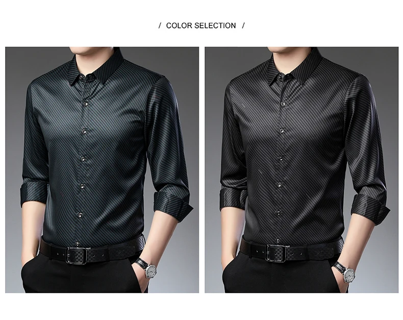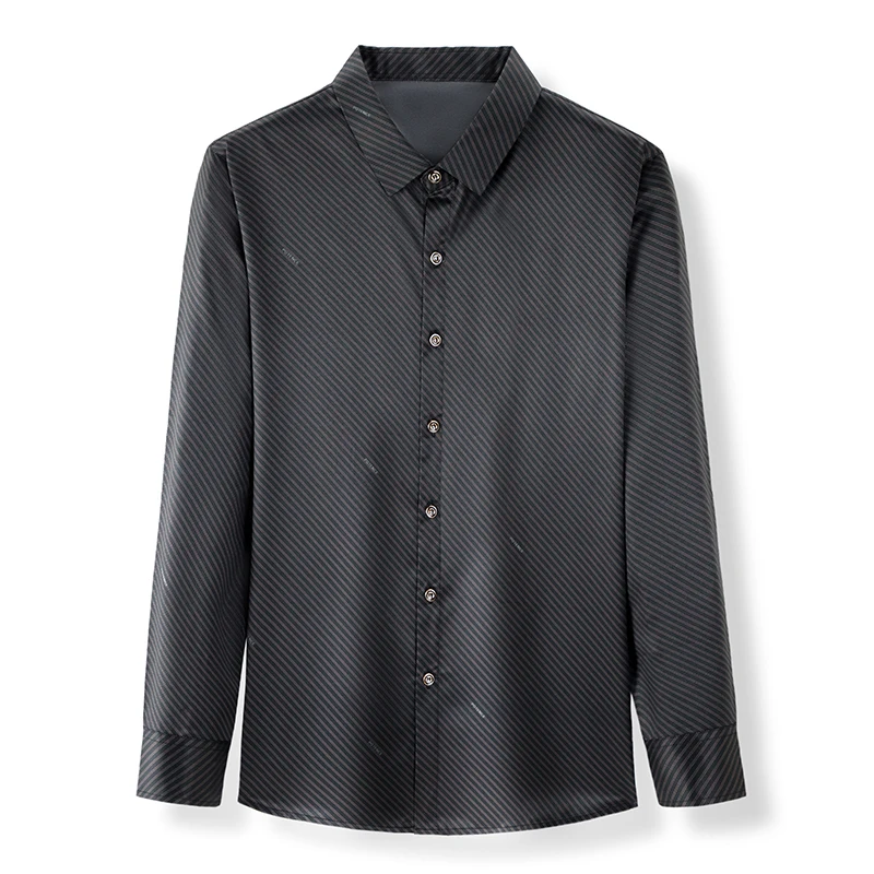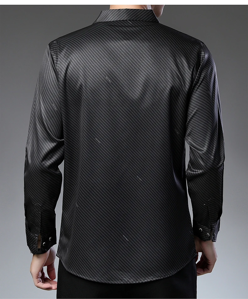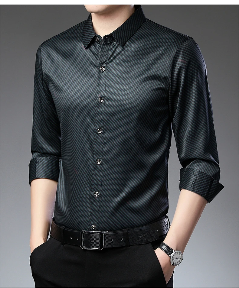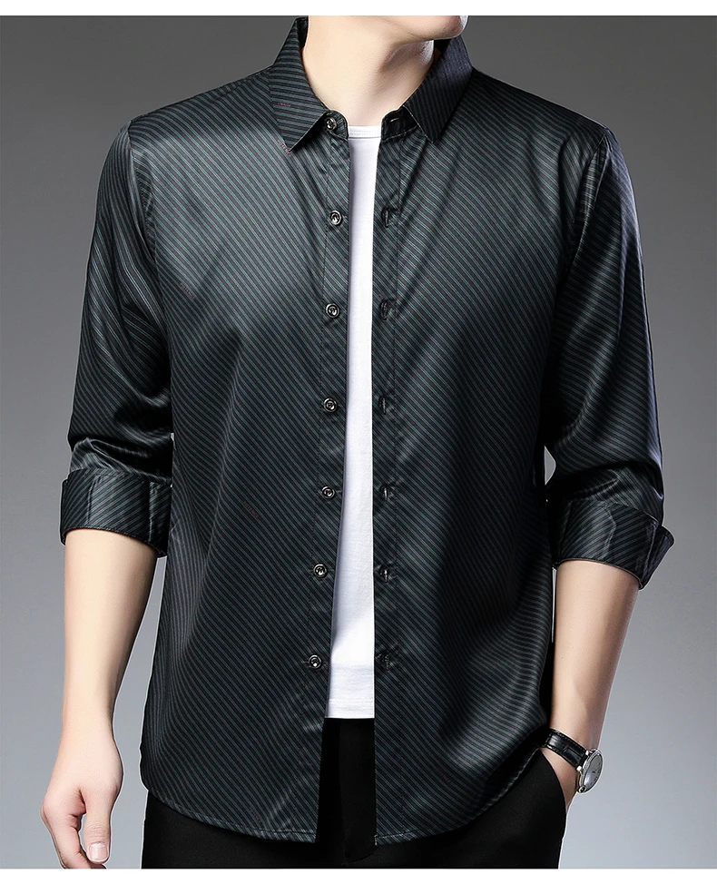 Рубашка мужская шелковая в полоску, тонкая сорочка с длинным рукаво...