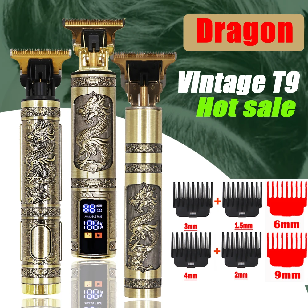 Машинка для стрижки волос Dragon t9, винтажная Беспроводная Машинка с USB, триммер для мужчин, 0 мм