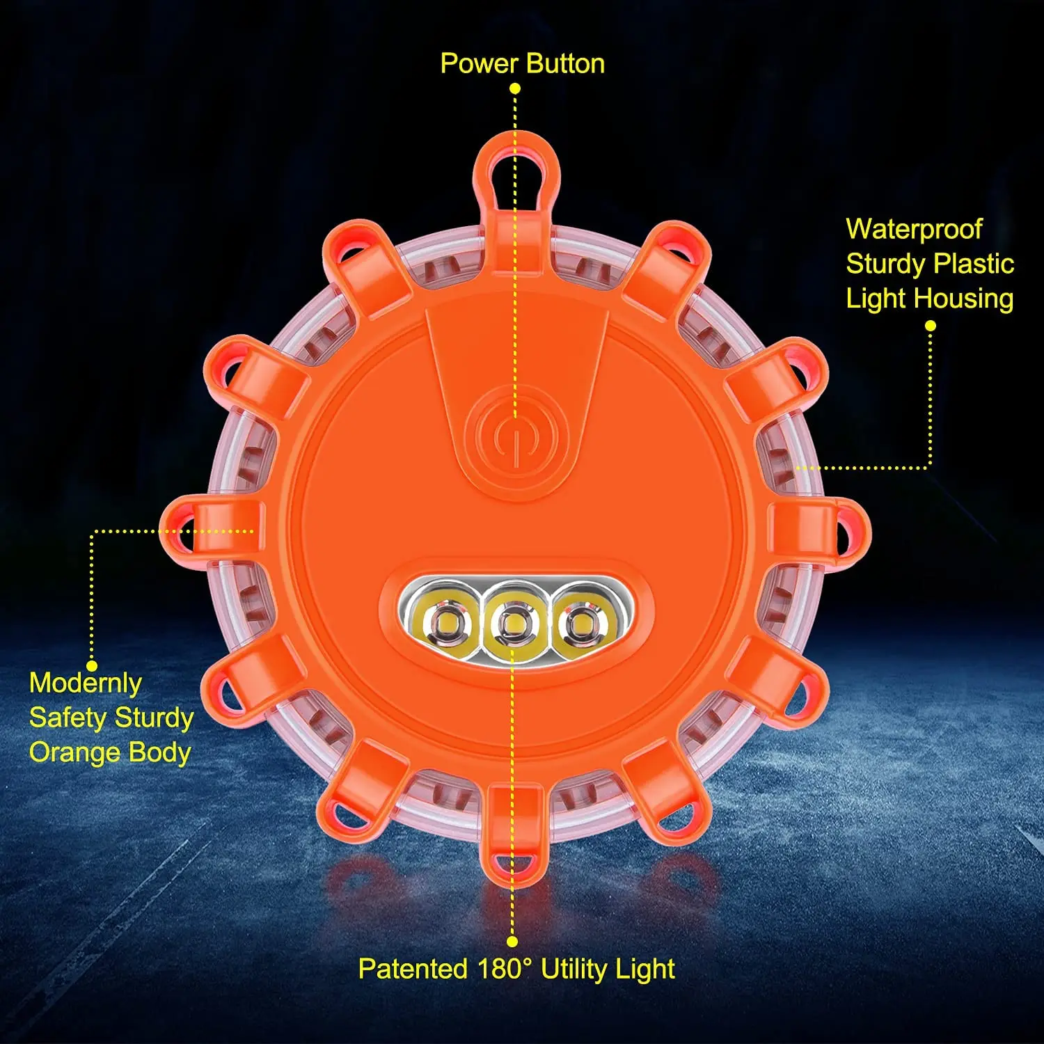 * 3. Реагируйте на неисправности дороги во времени; Иногда у вас даже нет достаточно времени, чтобы поставить треугольник на дорогу, просто включите дорожную вспышку и прикрепите ее к автомобилю благодаря своей магнитной базе.