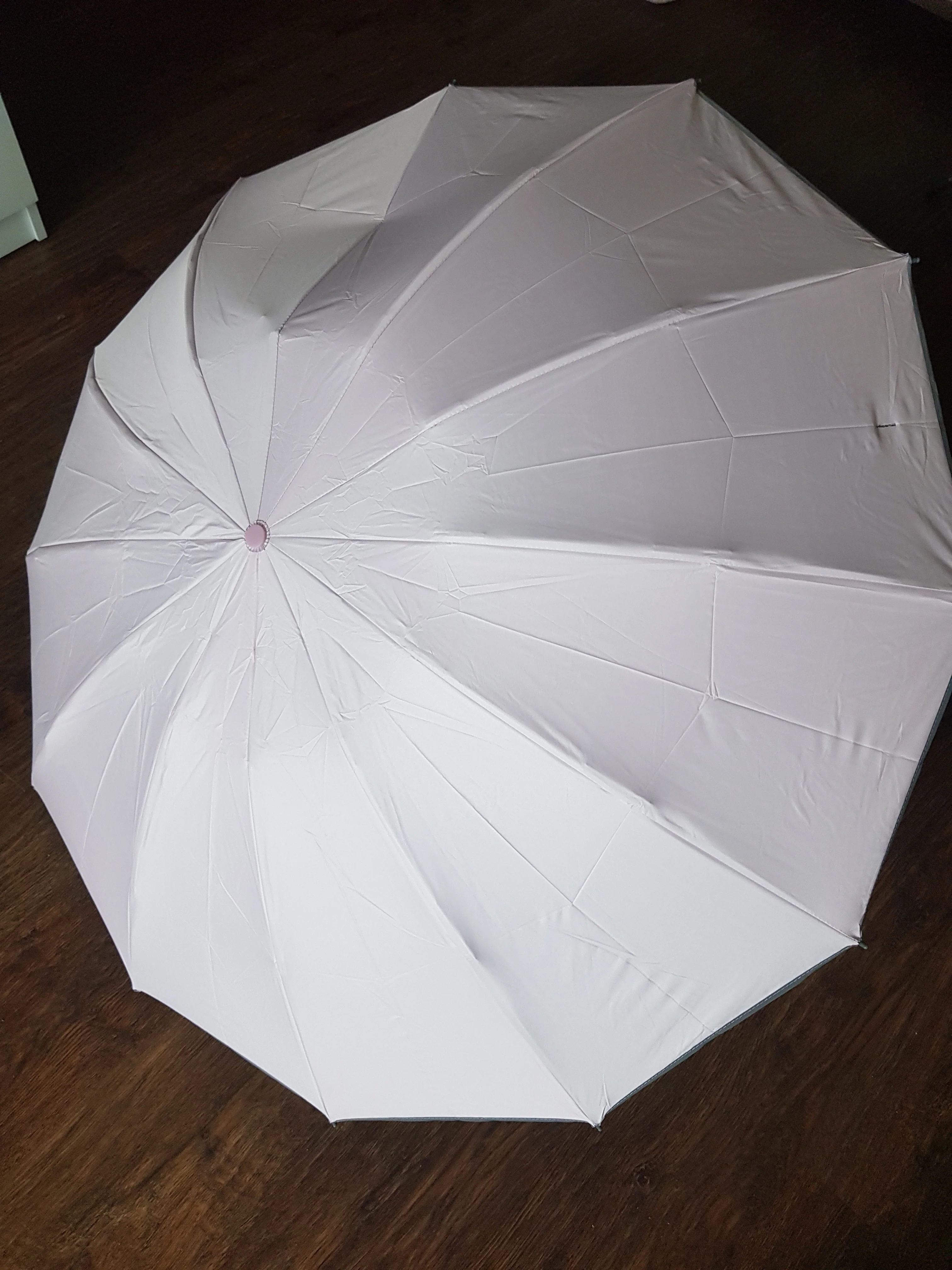 Зонт очень хорошо упакован. Он выглядит довольно хорошо. Складной механизм зонта очень быстрый.