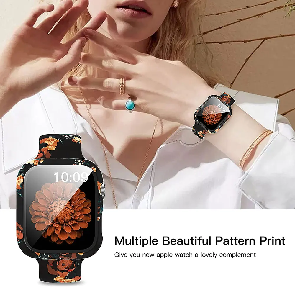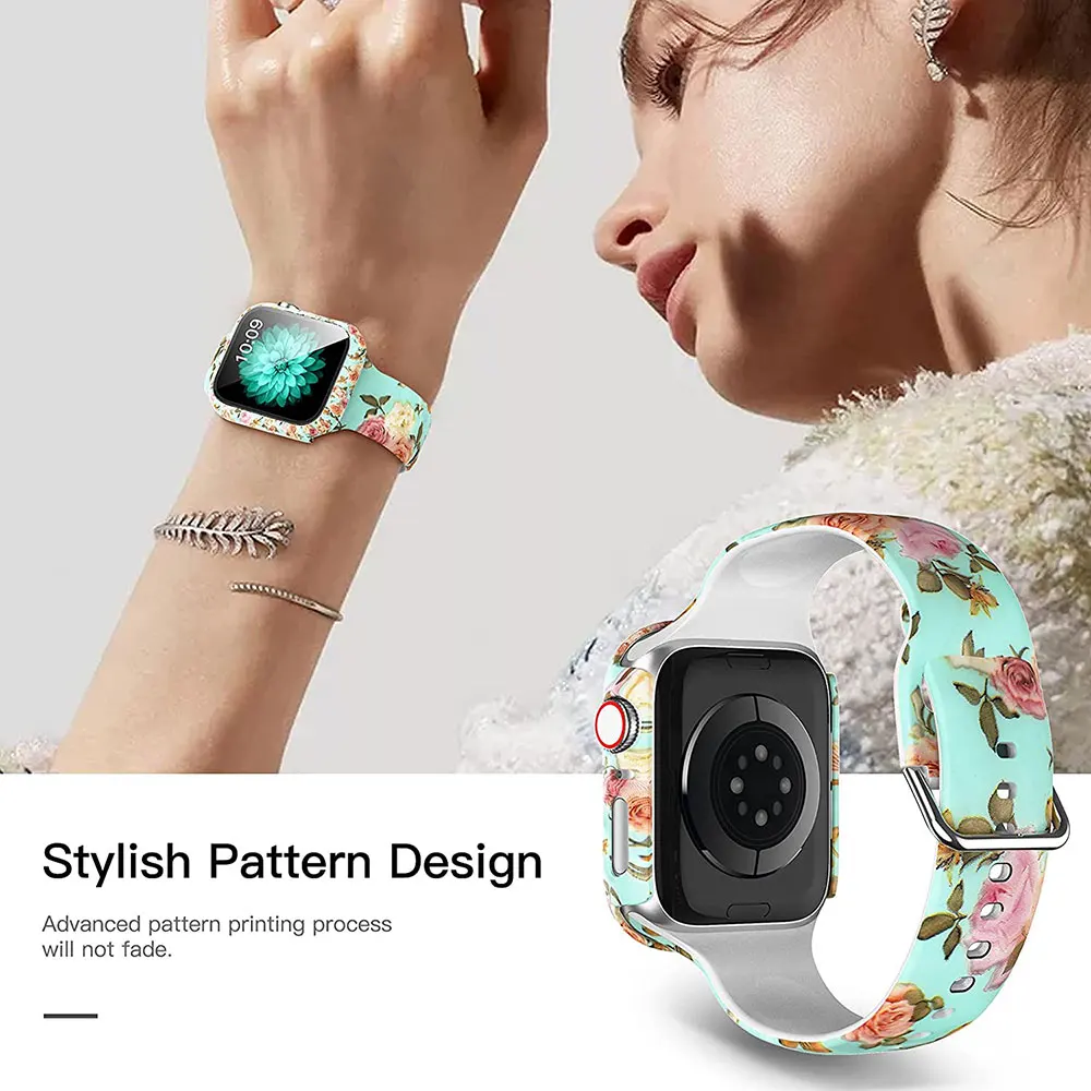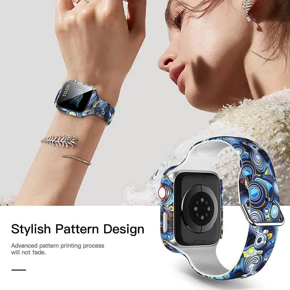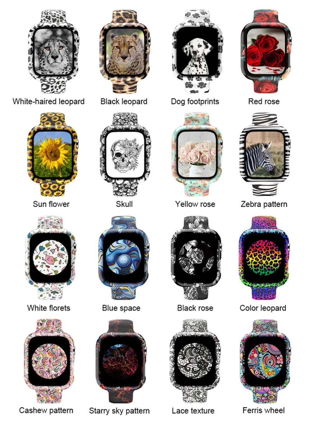 [Материал ремешка и корпуса]: Ленты изготовлены из высококачественного кремниевого материала с передовой печатью. Хорошо подходит для различных нарядов и случаев. Чехол изготовлен из премиального поликарбоната, не деформируется и обесцвечивается, защищает часы и края от ударов или царапин.