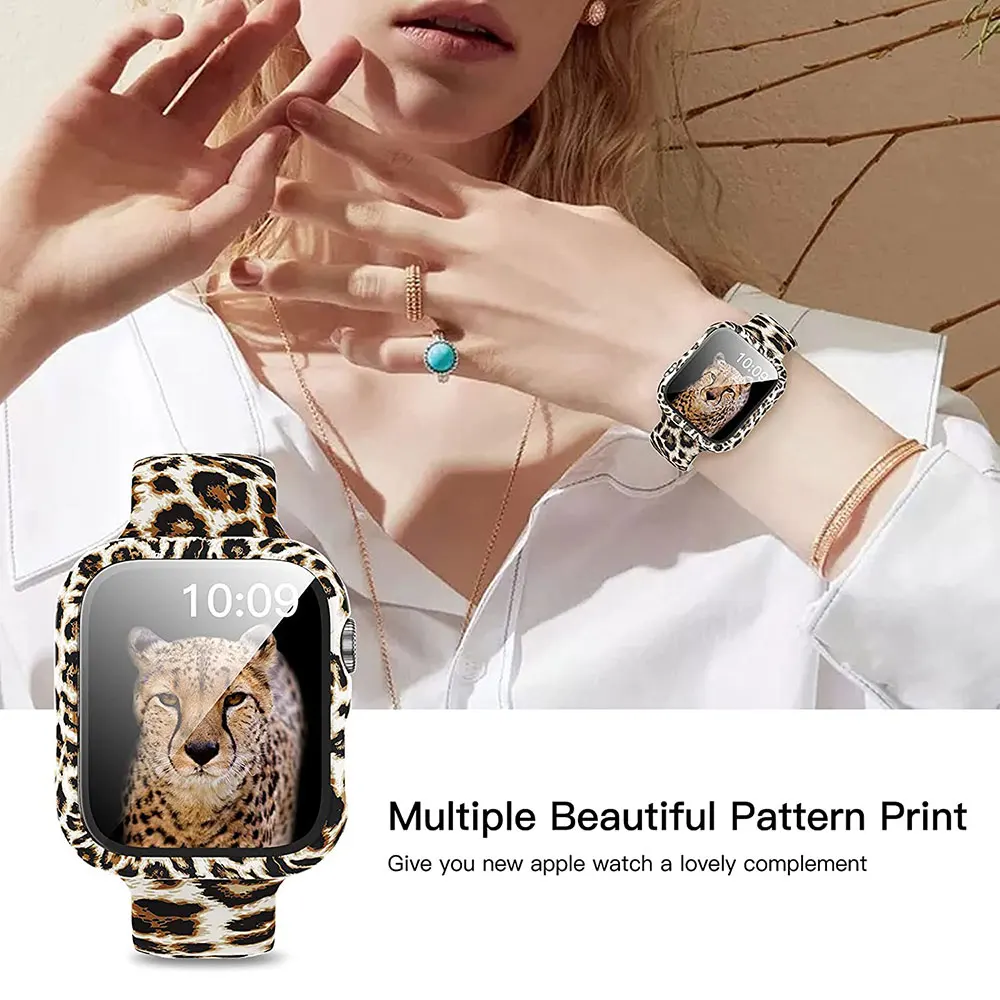 [Стеклянный чехол с леопардовым узором]Два в одном Жесткий Чехол для ПК со встроенным защитным стеклом для экрана. Защищает экран и края от потертостей и царапин. Этот чехол обеспечивает полную защиту ваших iwatch от царапин, пыли, полной защиты 360 ° и высокой прозрачности 99%.