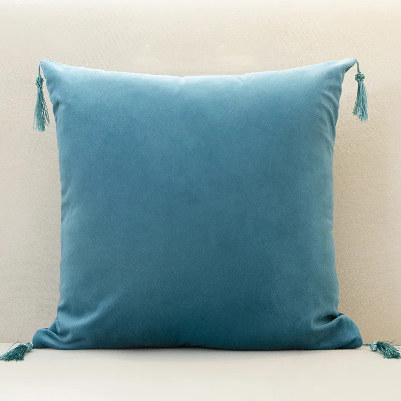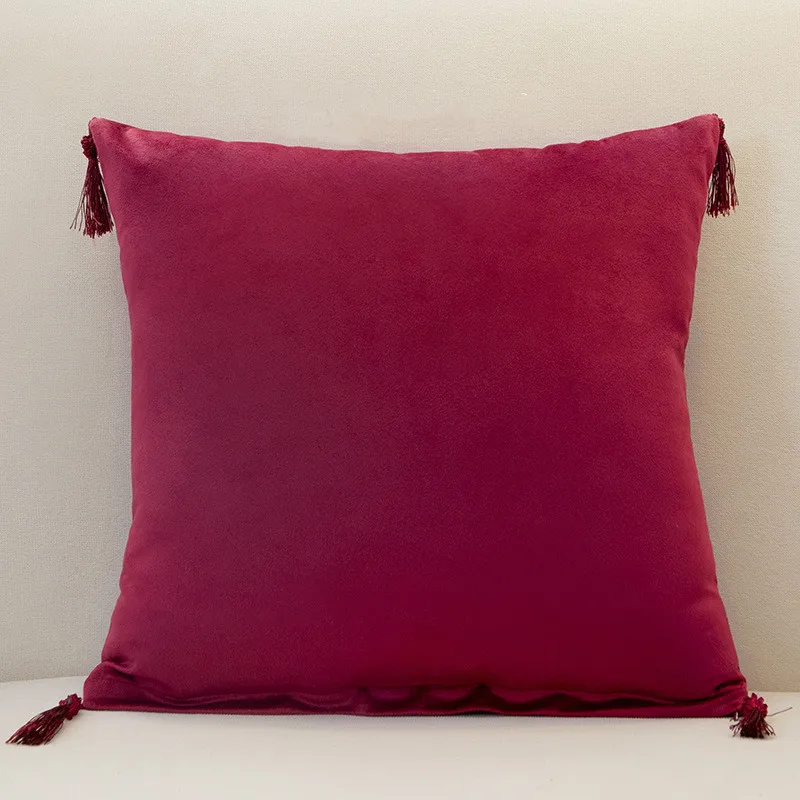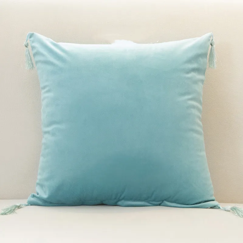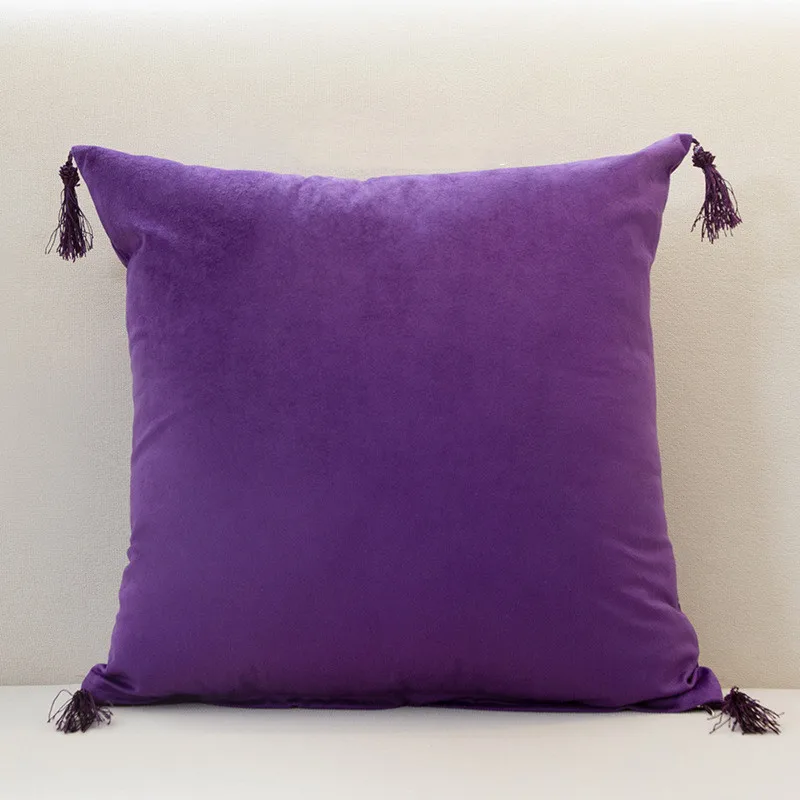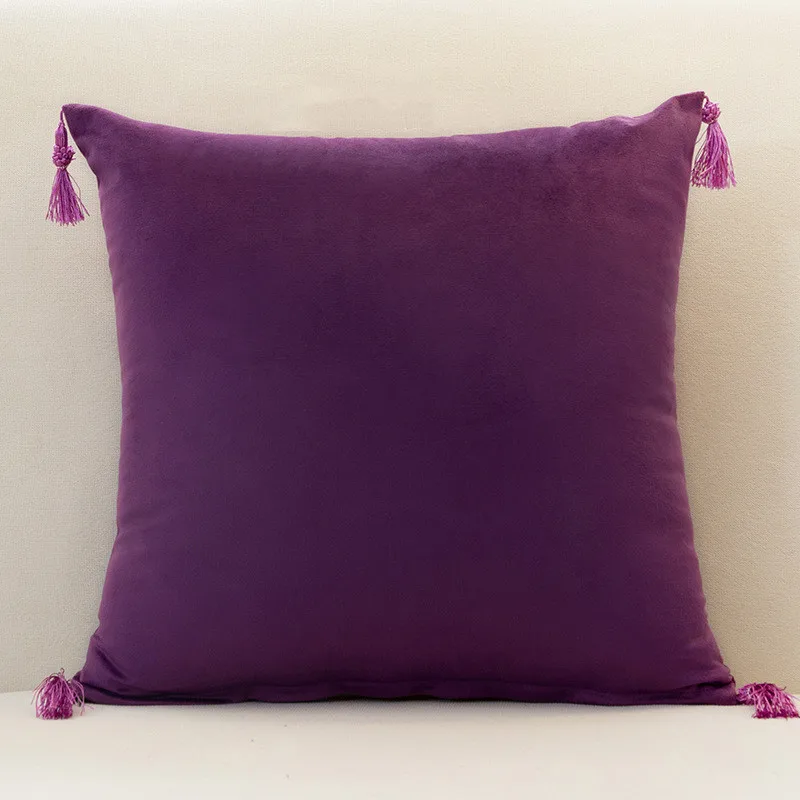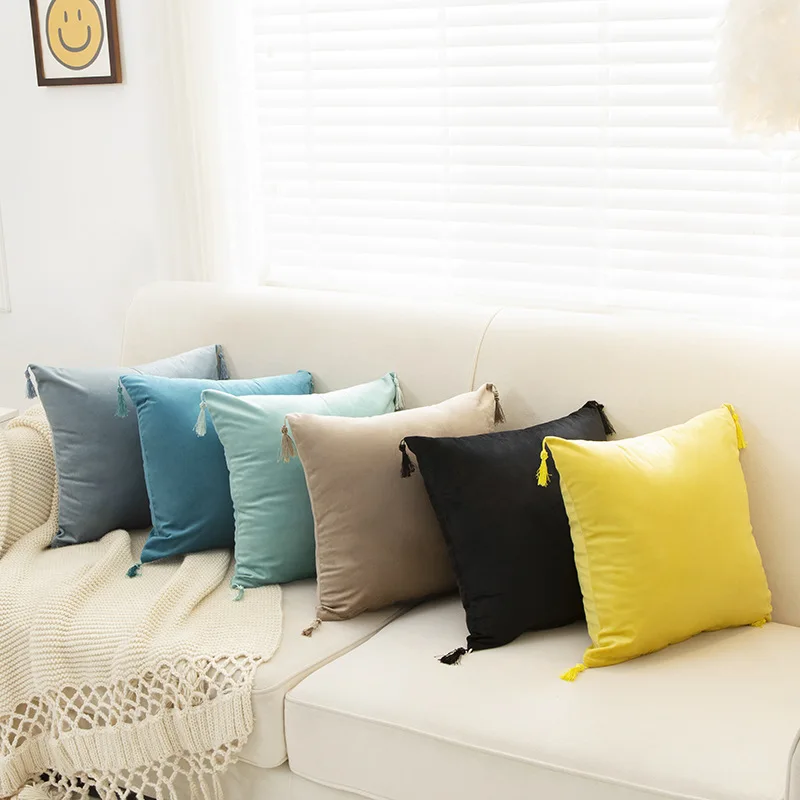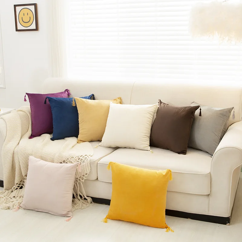 Бархатная наволочка 40*40 см с кисточкой, однотонная квадратная нав...