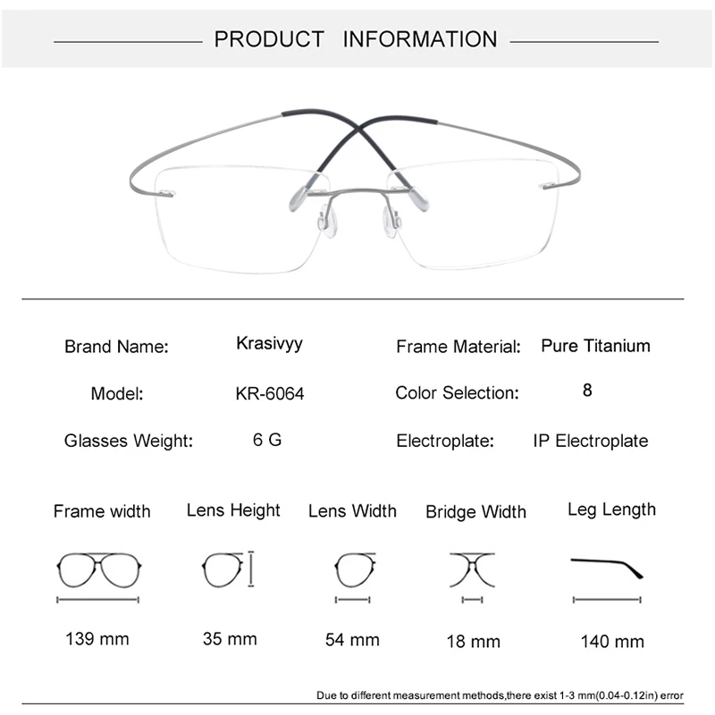 Оправа для очков Krasivyy Мужская без оправы, классические ультралегкие рецептурные квадратные очки из чистого титана, при близорукости