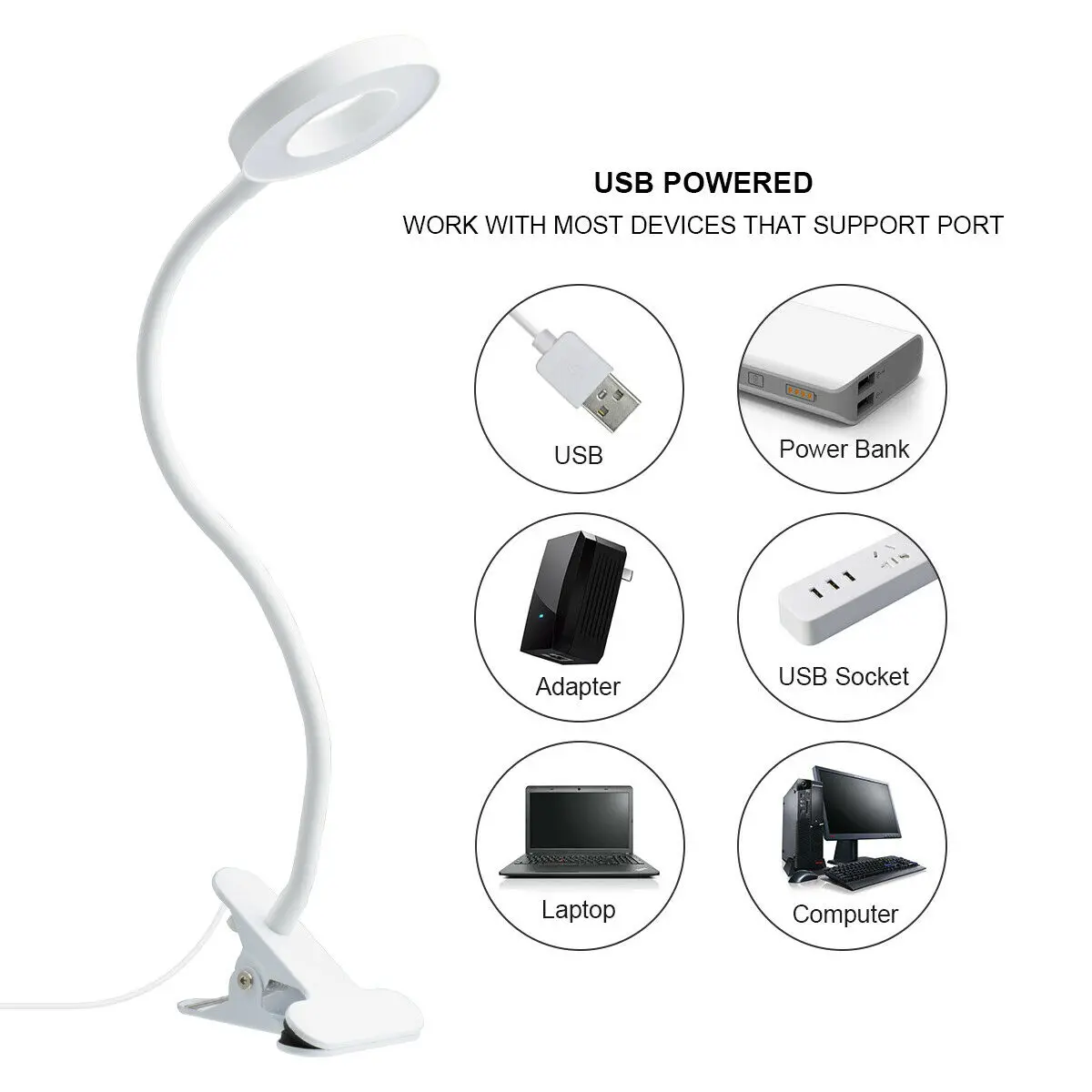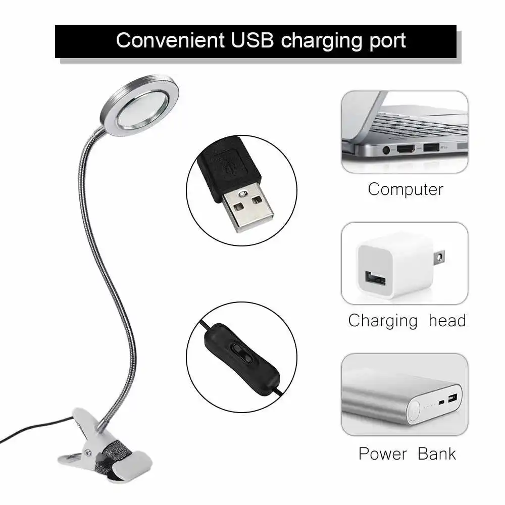 Светодиодный настольный светильник с регулировкой яркости +меняет цвет свечения от холодного до теплого 7 Вт с зажимом, светильник для чтения с регулируемой яркостью, USB настольная лампа без пульсации, светодиодный прикроватный светильник, детский ночник